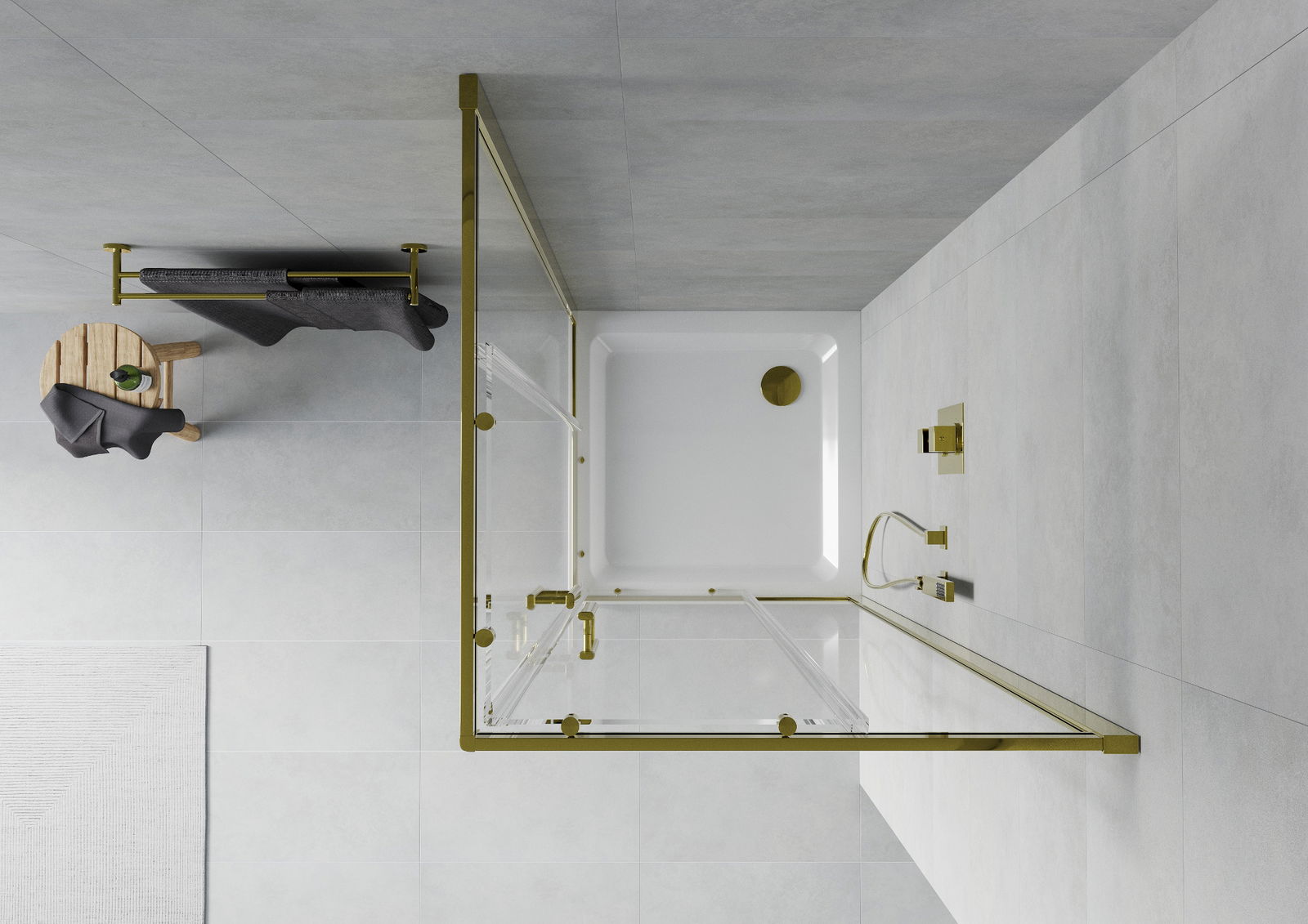 Mexen Rio vierkante douchecabine 90 x 90 cm, transparant, goudkleurig + Flat douchebak, wit - 860-090-090-50-00-4010G