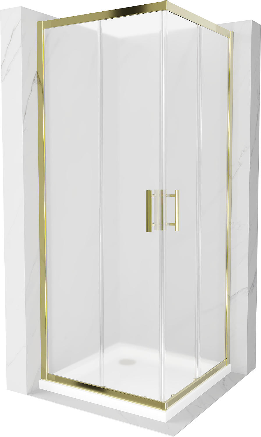 Mexen Rio vierkante douchecabine 70 x 70 cm, matglas, goud + Flat douchebak, wit - 860-070-070-50-30-4010G