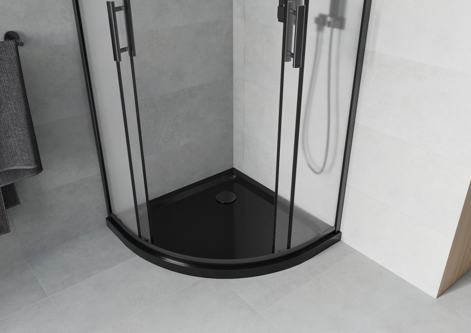 Mexen Rio halfronde douchecabine 80 x 80 cm, matglas, zwart + Flat douchebak, zwart - 863-080-080-70-30-4170B