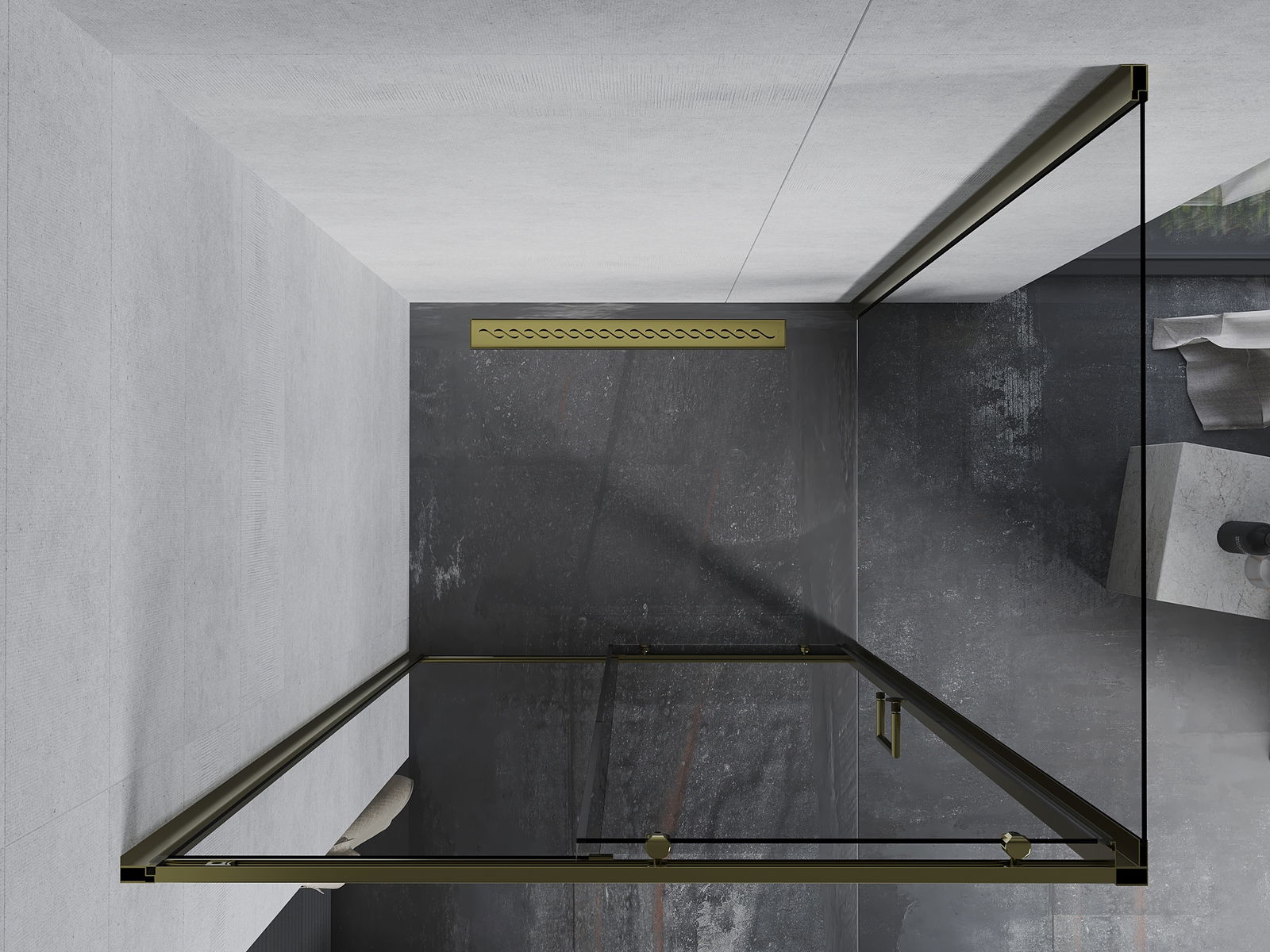 Handige en comfortabele greep is gemaakt van duurzaam en weerbestendig metaal. De modieuze vorm in combinatie met een afwerking die past bij de kleur van de profielen geeft het geheel een moderne en stijlvolle uitstraling, wat de esthetiek van elke badkamer benadrukt.