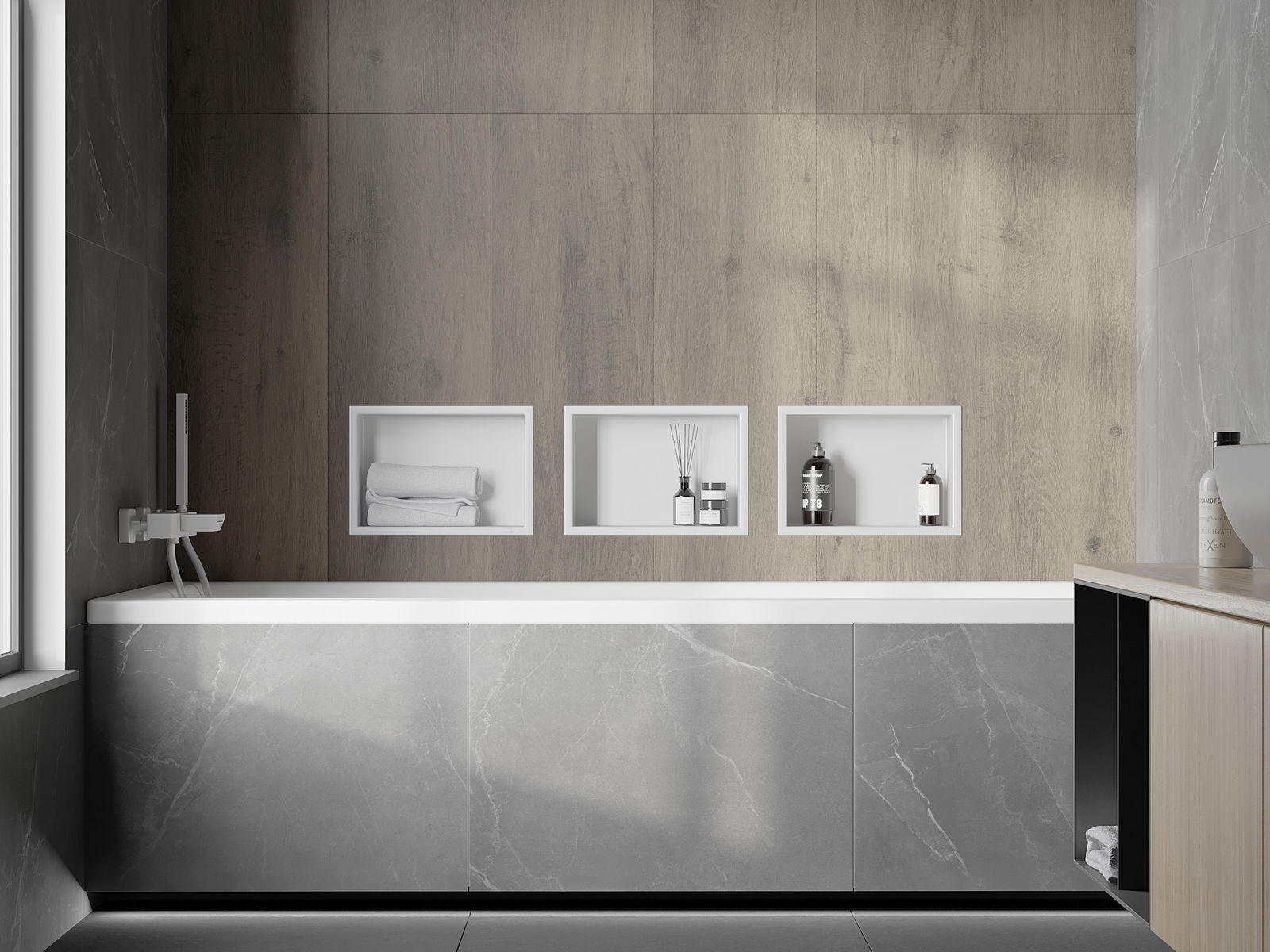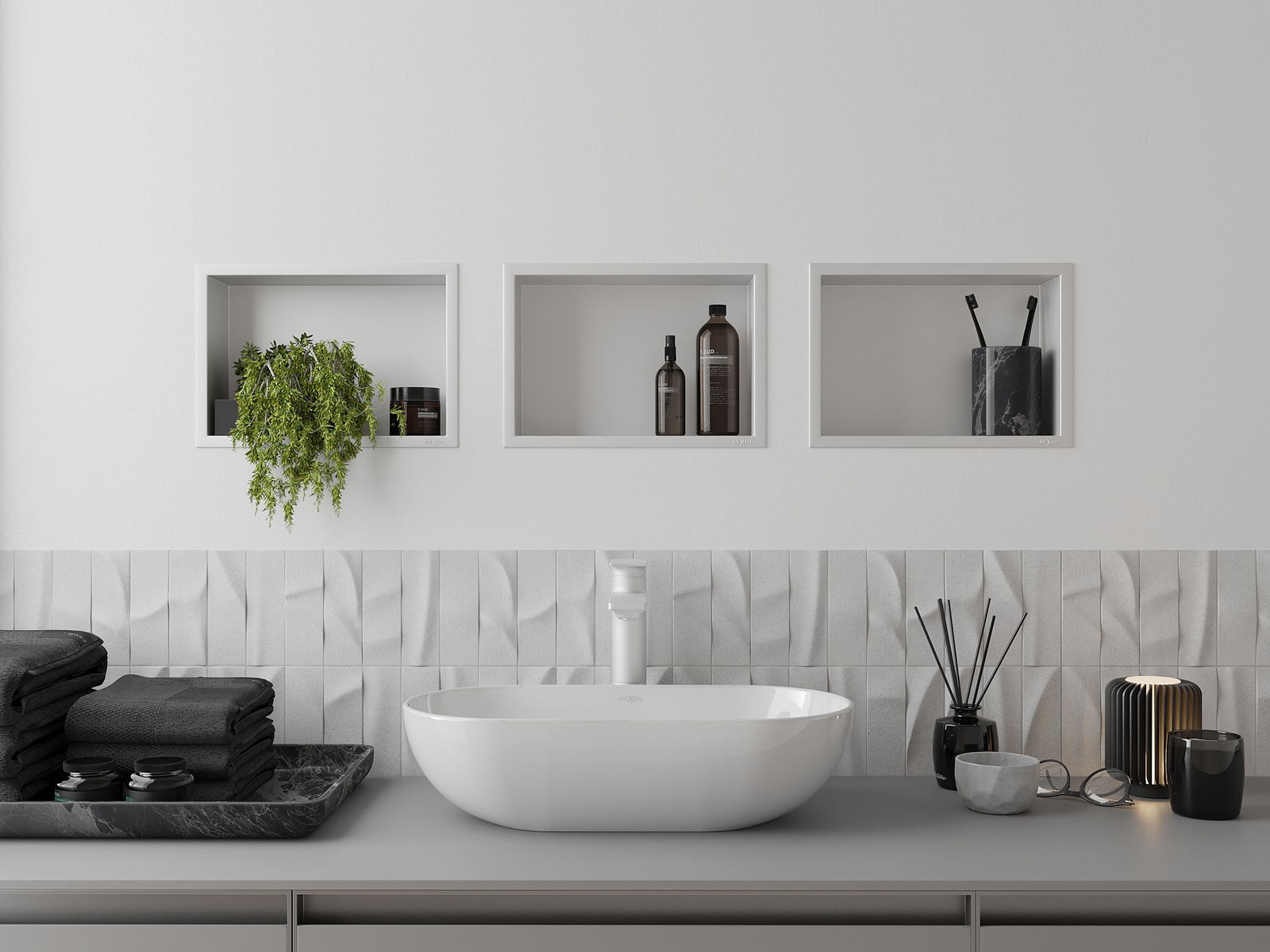 Mogelijkheid voor installatie in de muur of in speciaal voorbereide bekleding. Dit is een uiterst moderne en functionele oplossing, waardoor u ruimte kunt besparen en het product kunt aanpassen aan de esthetiek van het interieur en een samenhangende compositie kunt creëren.
