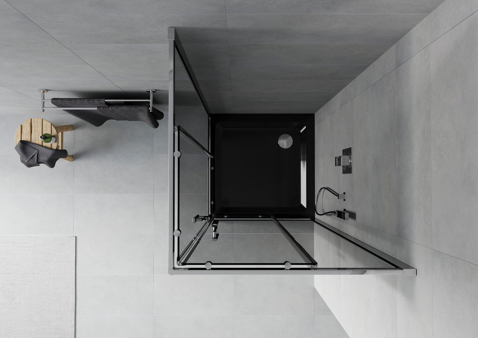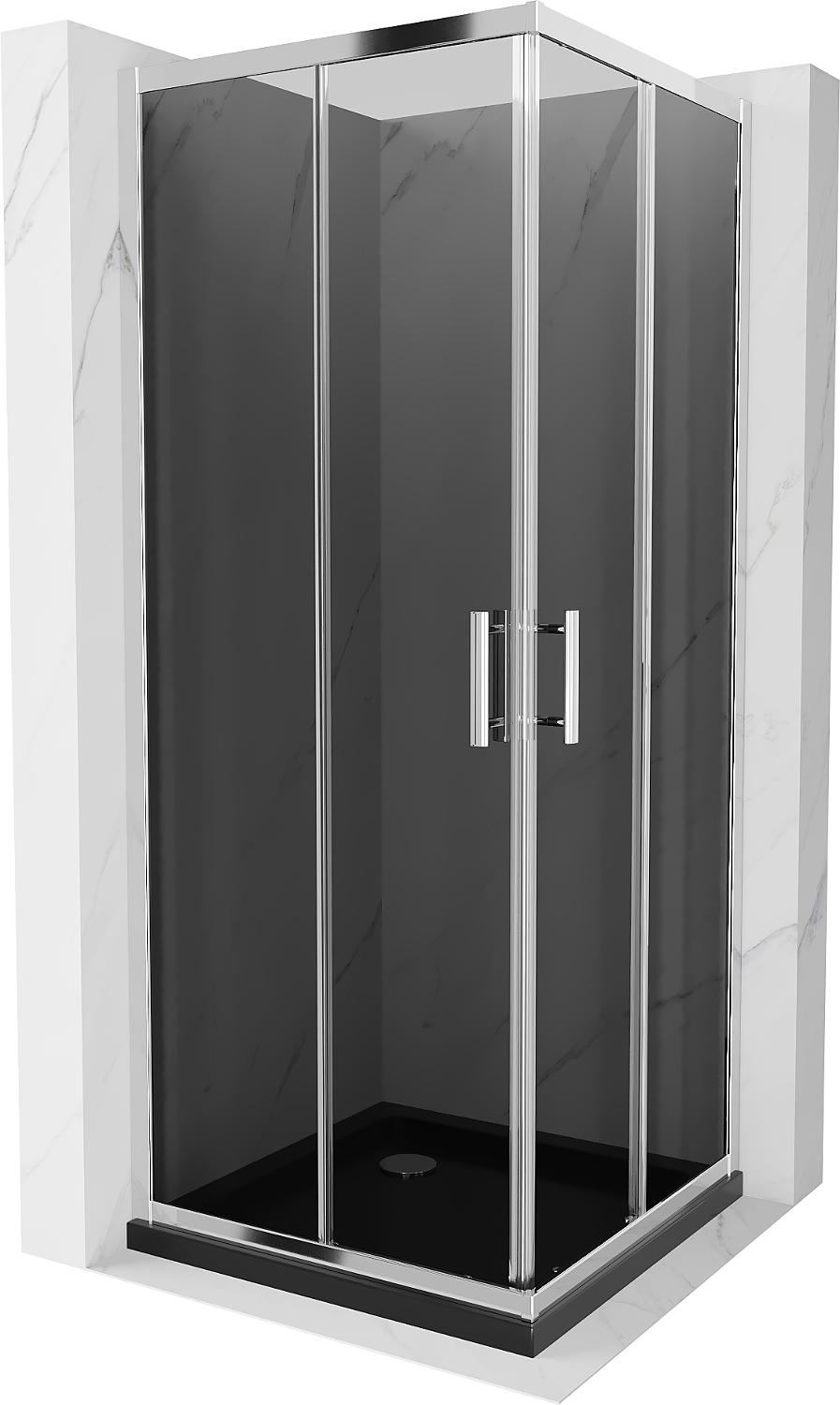 Mexen Rio vierkante douchecabine 70 x 70 cm, grafiet, chroom + Flat douchebak, zwart - 860-070-070-01-40-4070