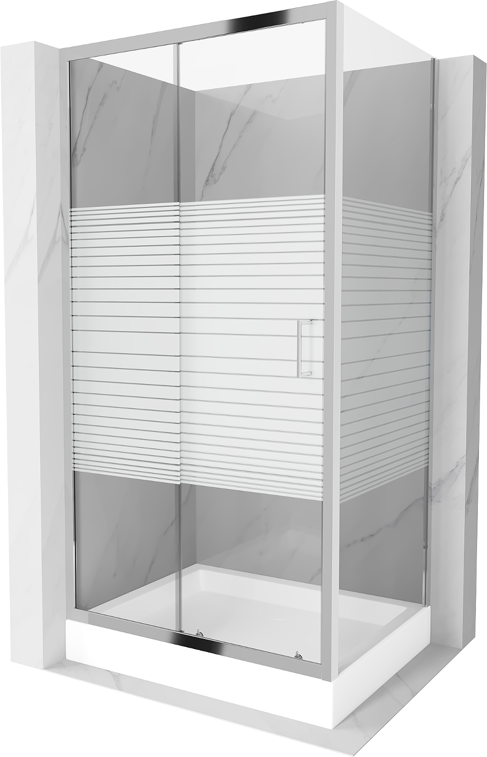 Mexen Apia schuifdouchecabine 100 x 80 cm, witte strepen, chroom + Rio douchebak - 840-100-080-01-20-4510