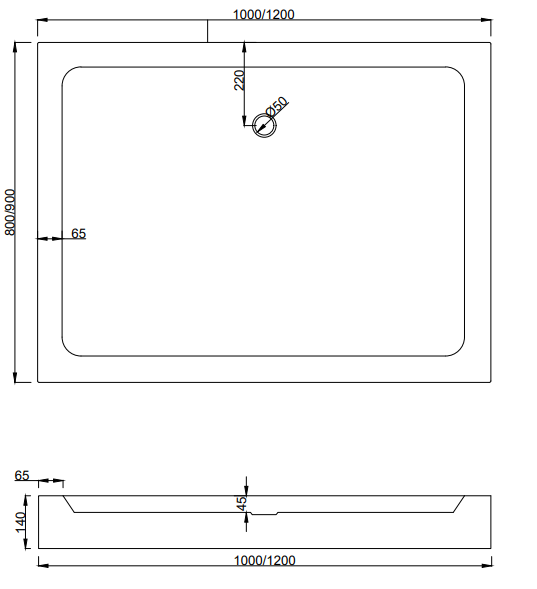 Technische gegevens van de douchebak: