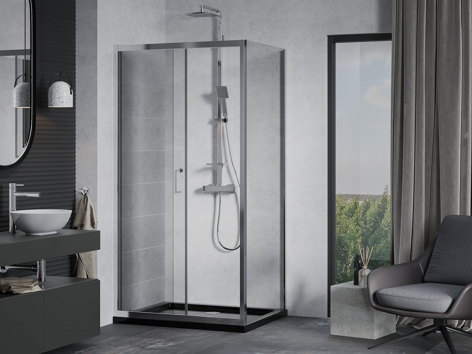 Schuifdeuren bewegen zich over speciale rails en hebben geen extra ruimte nodig om geopend te worden, daarom zijn ze ideaal voor kleinere badkamers. Dankzij de dubbele rollen van duurzaam kunststof is hun beweging soepel.