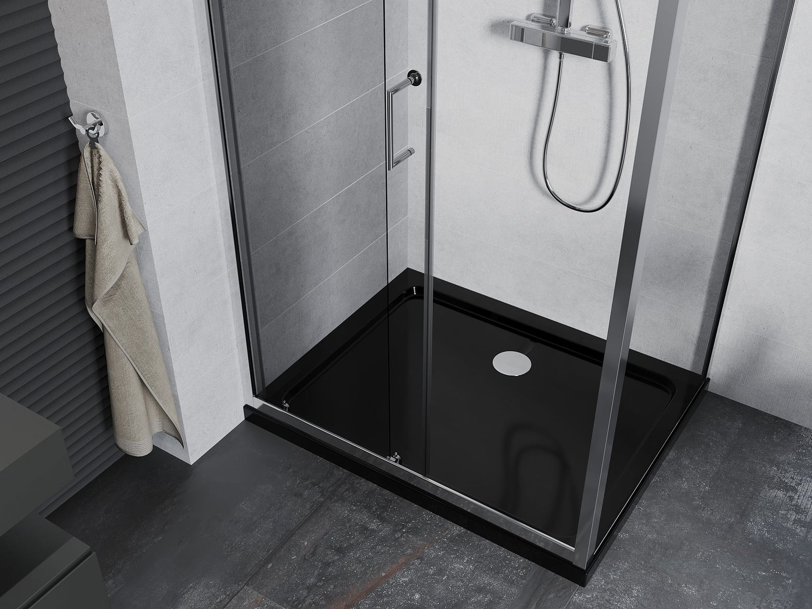Mexen Apia schuifdouchecabine 120 x 80 cm, transparant, chroom + Flat douchebak, zwart - 840-120-080-01-00-4070