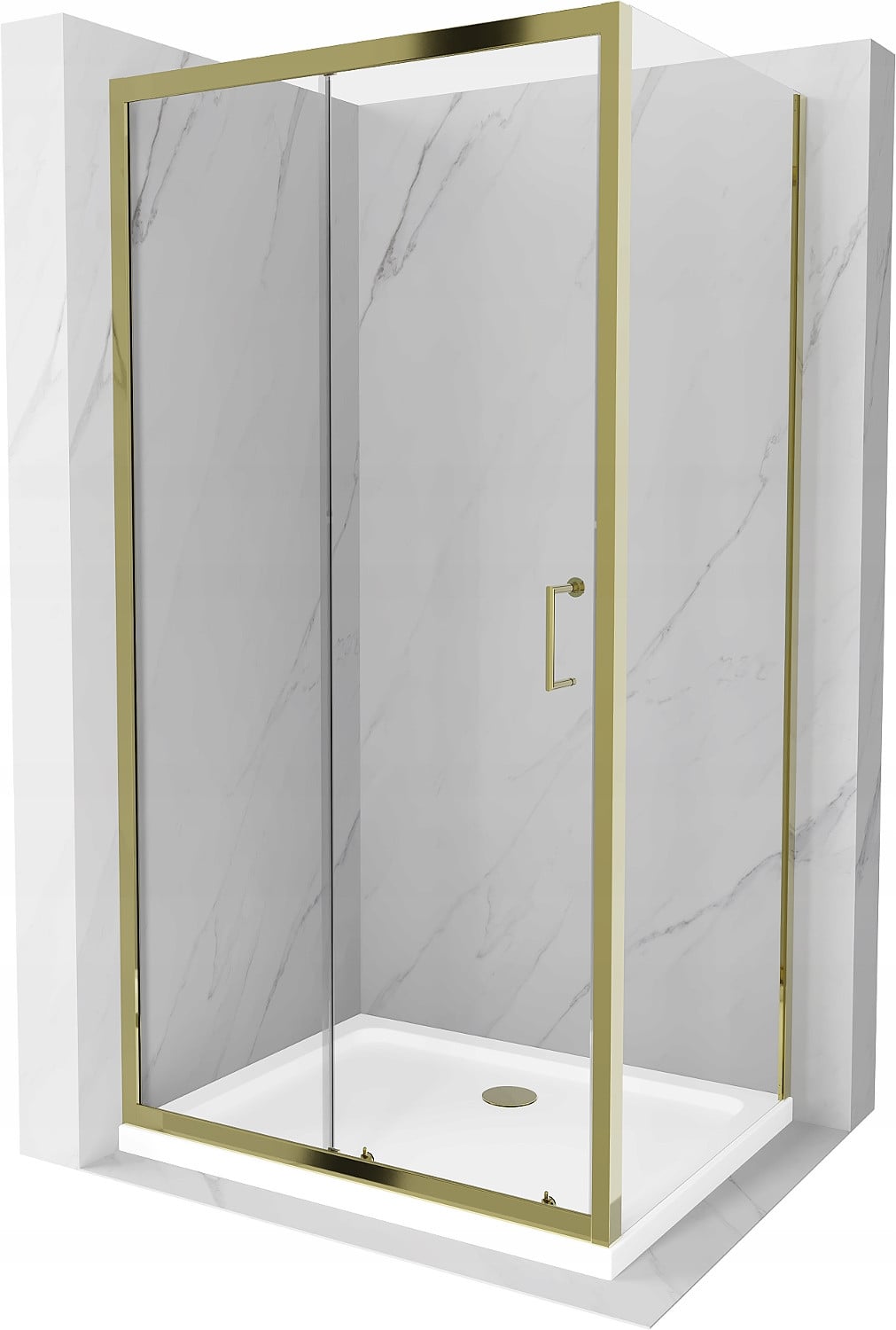 Mexen Apia schuifdouchecabine 110 x 100 cm, transparant, goud + Flat douchebak, wit- 840-110-100-50-00-4010G