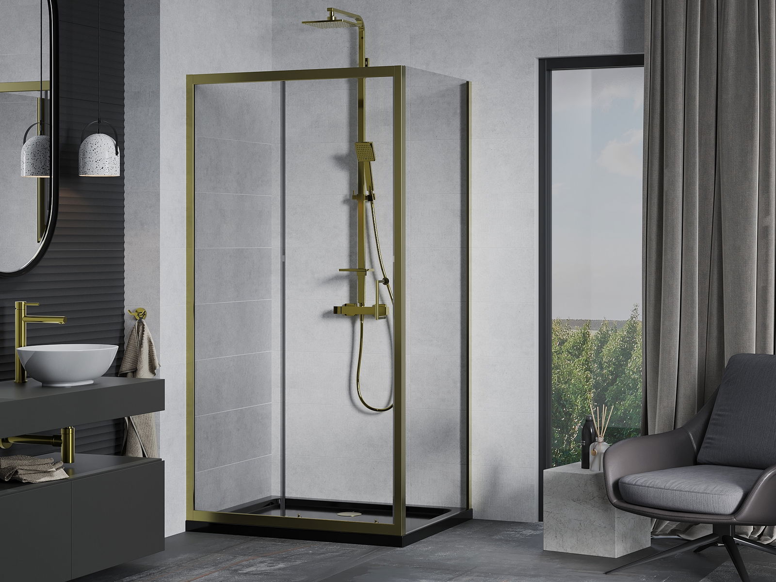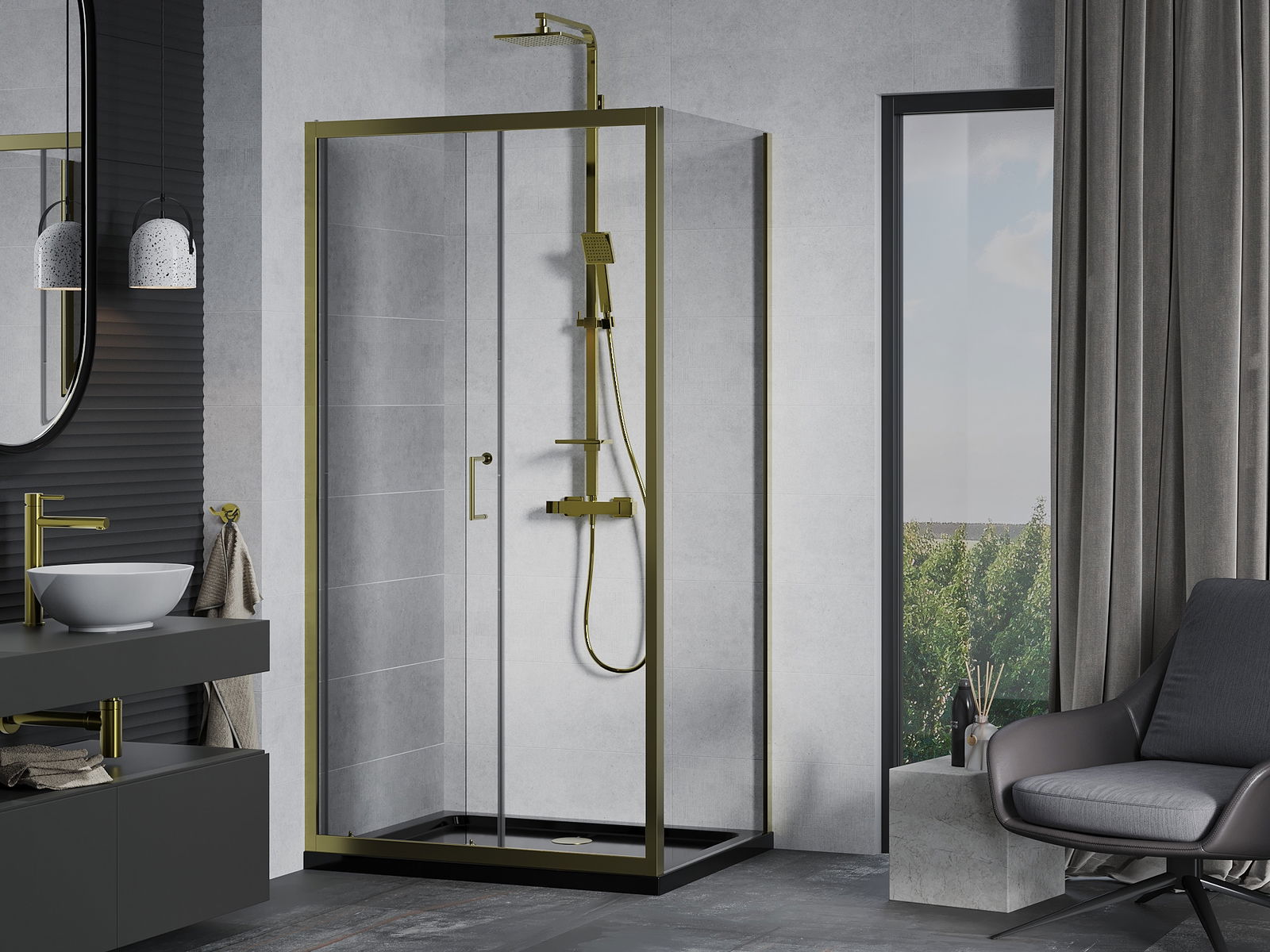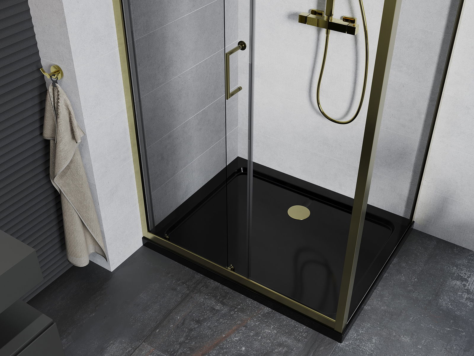 Handige en comfortabele greep is gemaakt van duurzaam en weerbestendig metaal. De modieuze vorm in combinatie met een afwerking die past bij de kleur van de profielen geeft het geheel een moderne en stijlvolle uitstraling, wat de esthetiek van elke badkamer benadrukt.