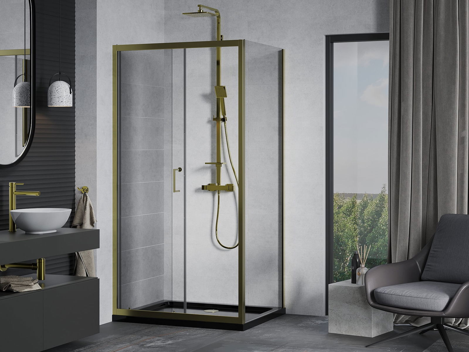 Mexen Apia douchekabine schuifdeur 130 x 70 cm, transparant, goud + Flat douchebak, zwart - 840-130-070-50-00-4070G