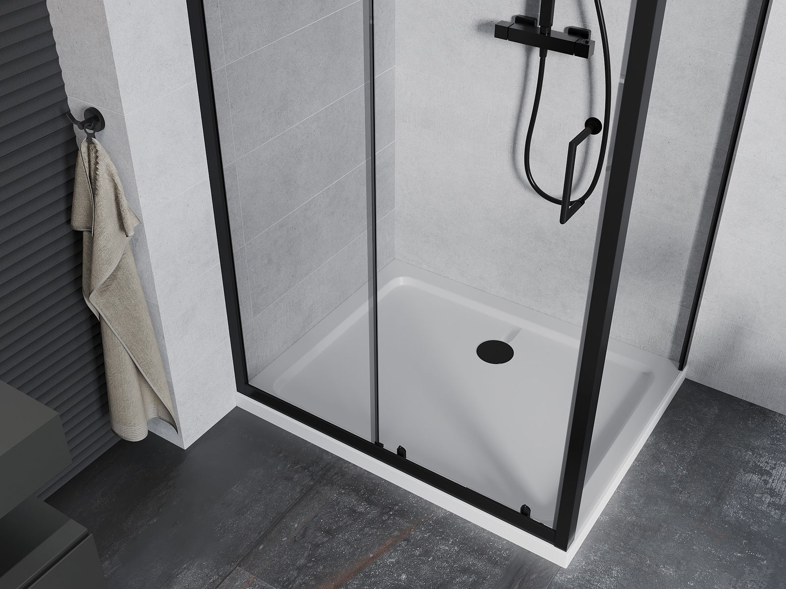 Mexen Apia schuifdouchecabine 110 x 70 cm, transparant, zwart + Flat-douchebak, wit- 840-110-070-70-00-4010B