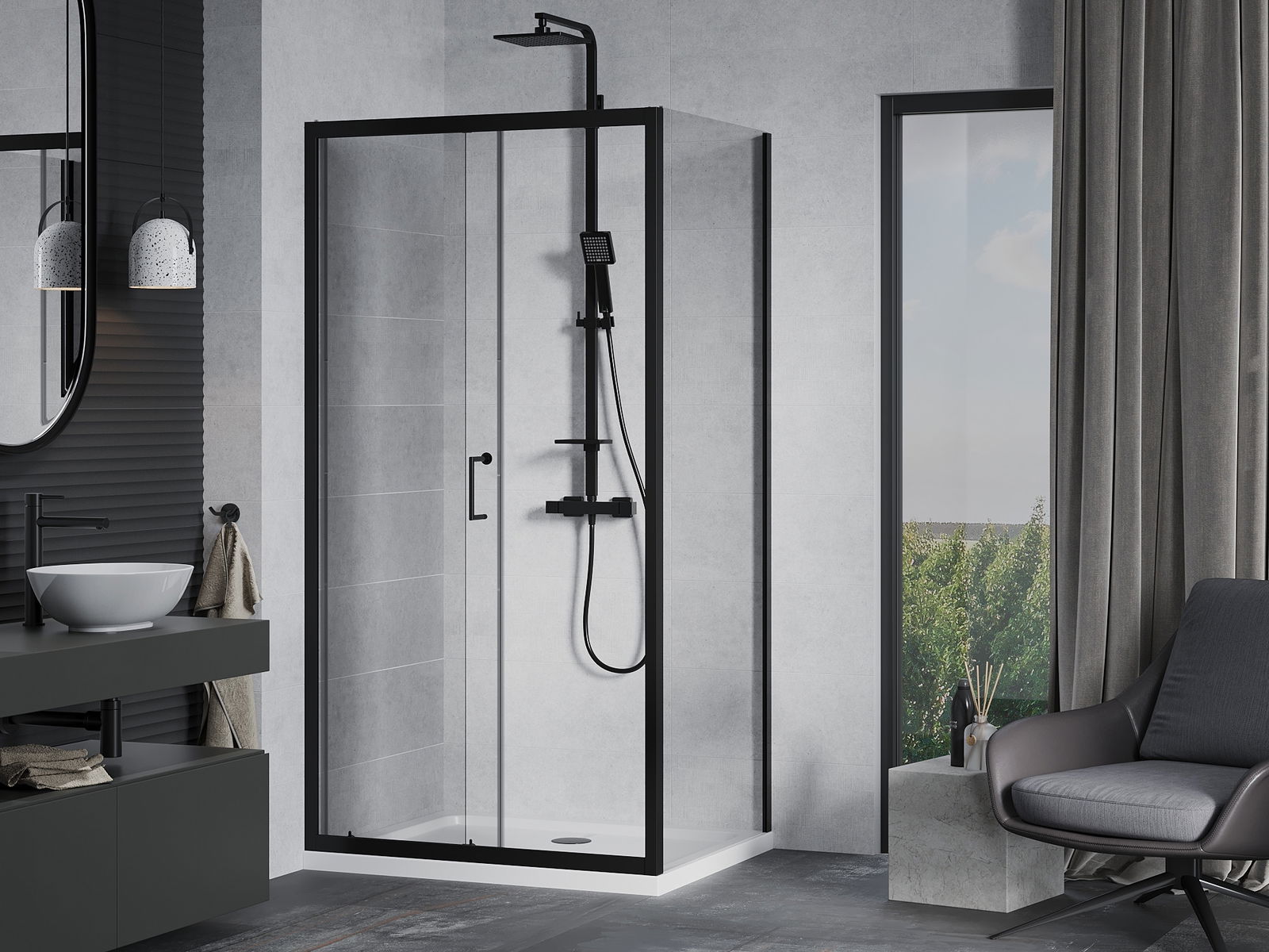 Handige en comfortabele greep is gemaakt van duurzaam en weerbestendig metaal. De modieuze vorm in combinatie met een afwerking die past bij de kleur van de profielen geeft het geheel een moderne en stijlvolle uitstraling, wat de esthetiek van elke badkamer benadrukt.