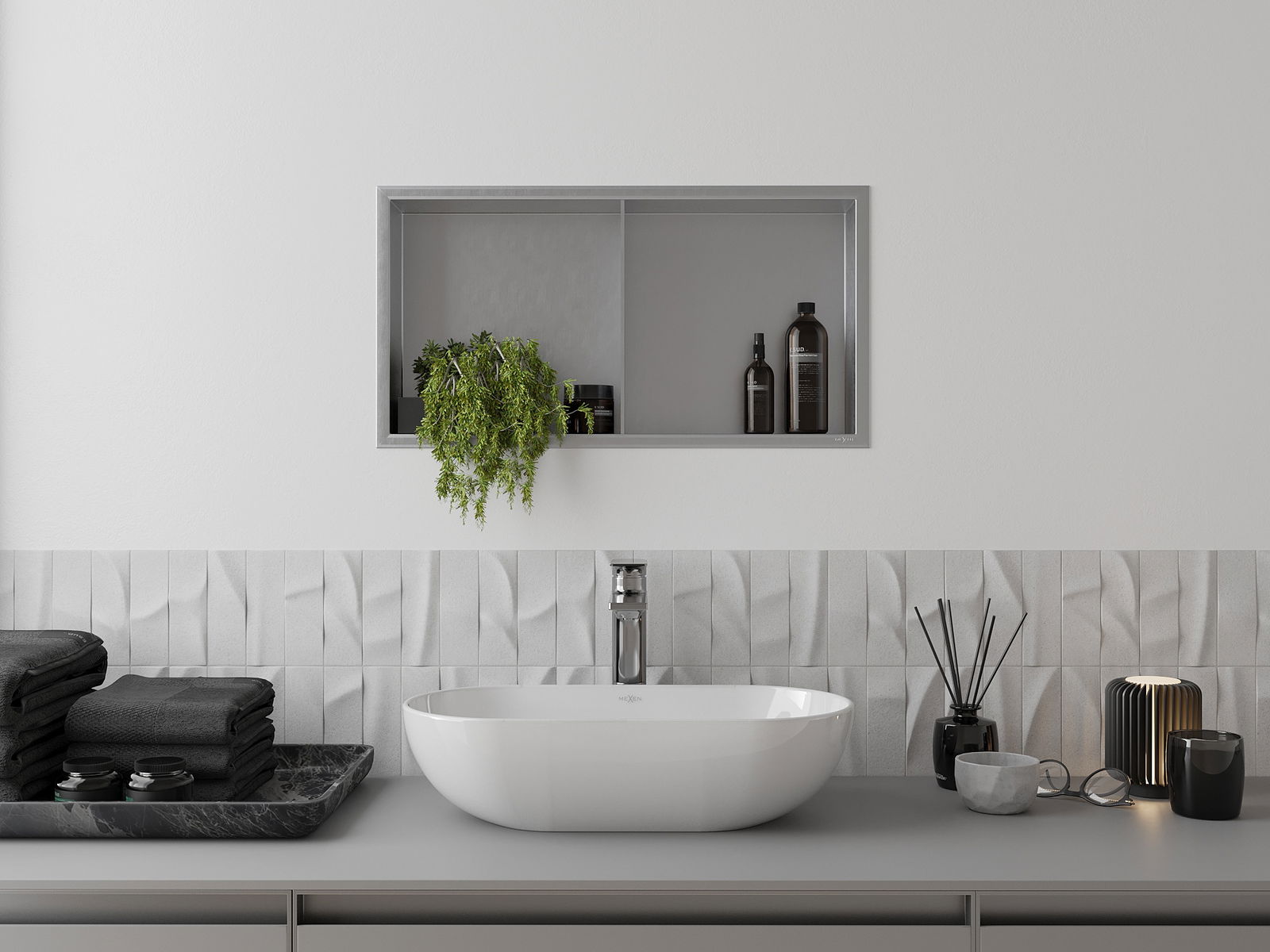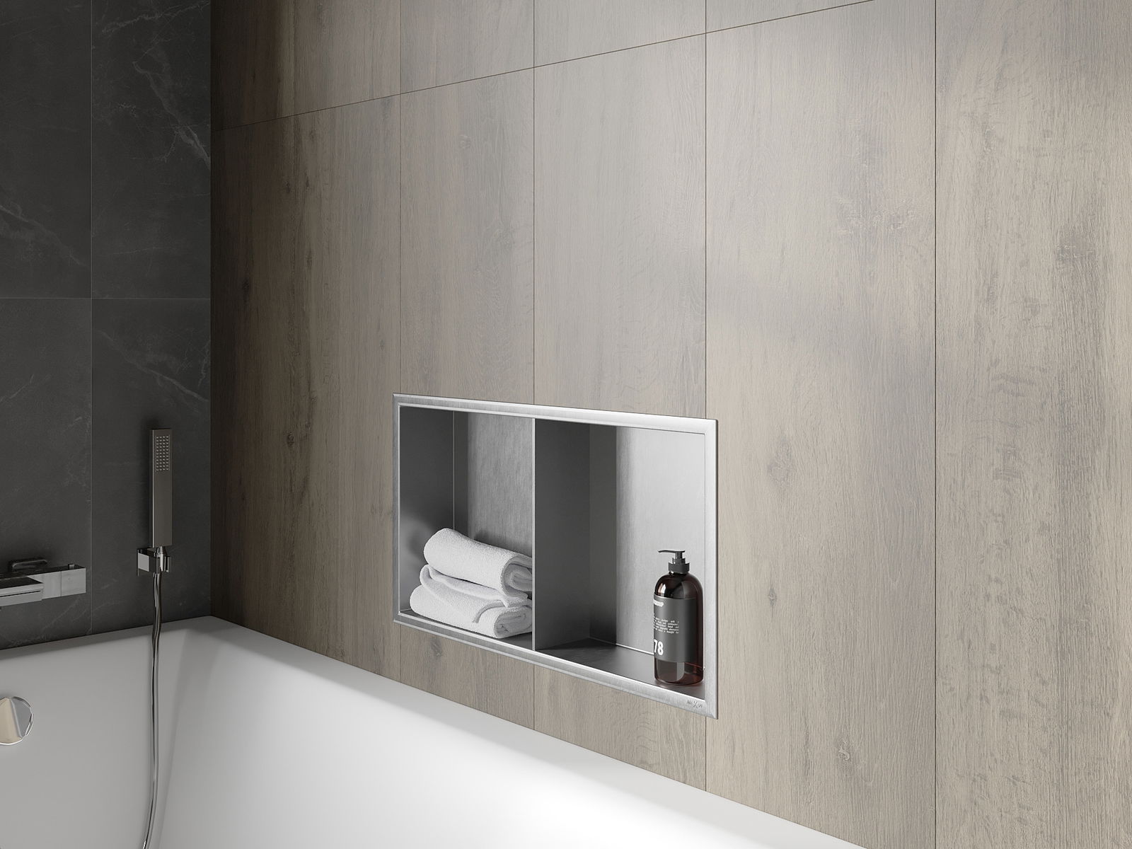 Mexen X-Wall-R nis niche plank met flens en plank 60 x 30 cm, inox - 1910603010S