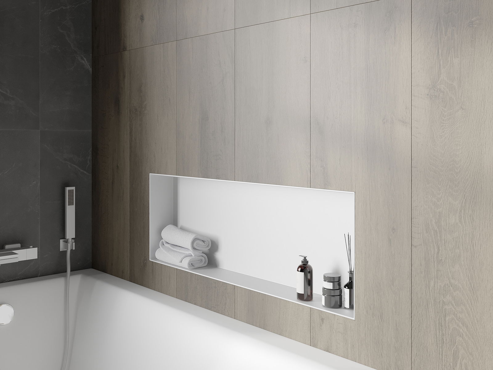 Mogelijkheid voor installatie in de muur of in speciaal voorbereide bekleding. Dit is een uiterst moderne en functionele oplossing, waardoor u ruimte kunt besparen en het product kunt aanpassen aan de esthetiek van het interieur en een samenhangende compositie kunt creëren.