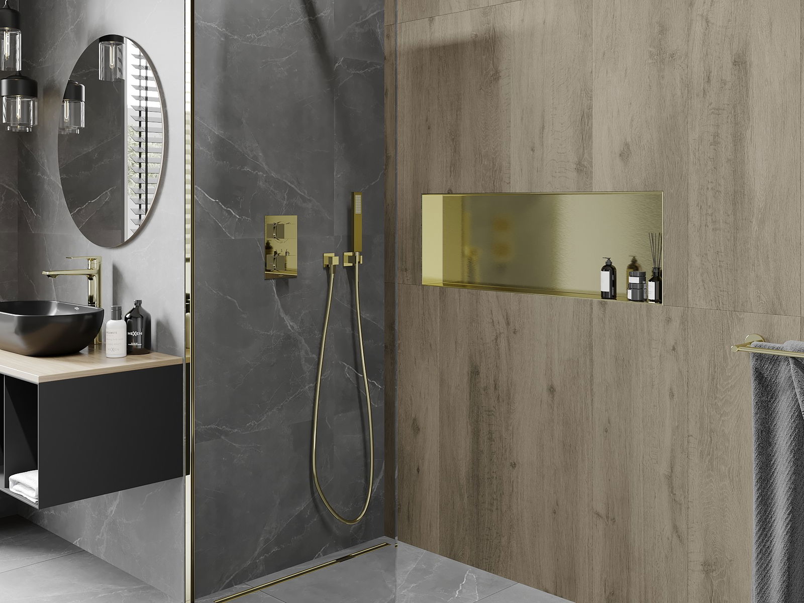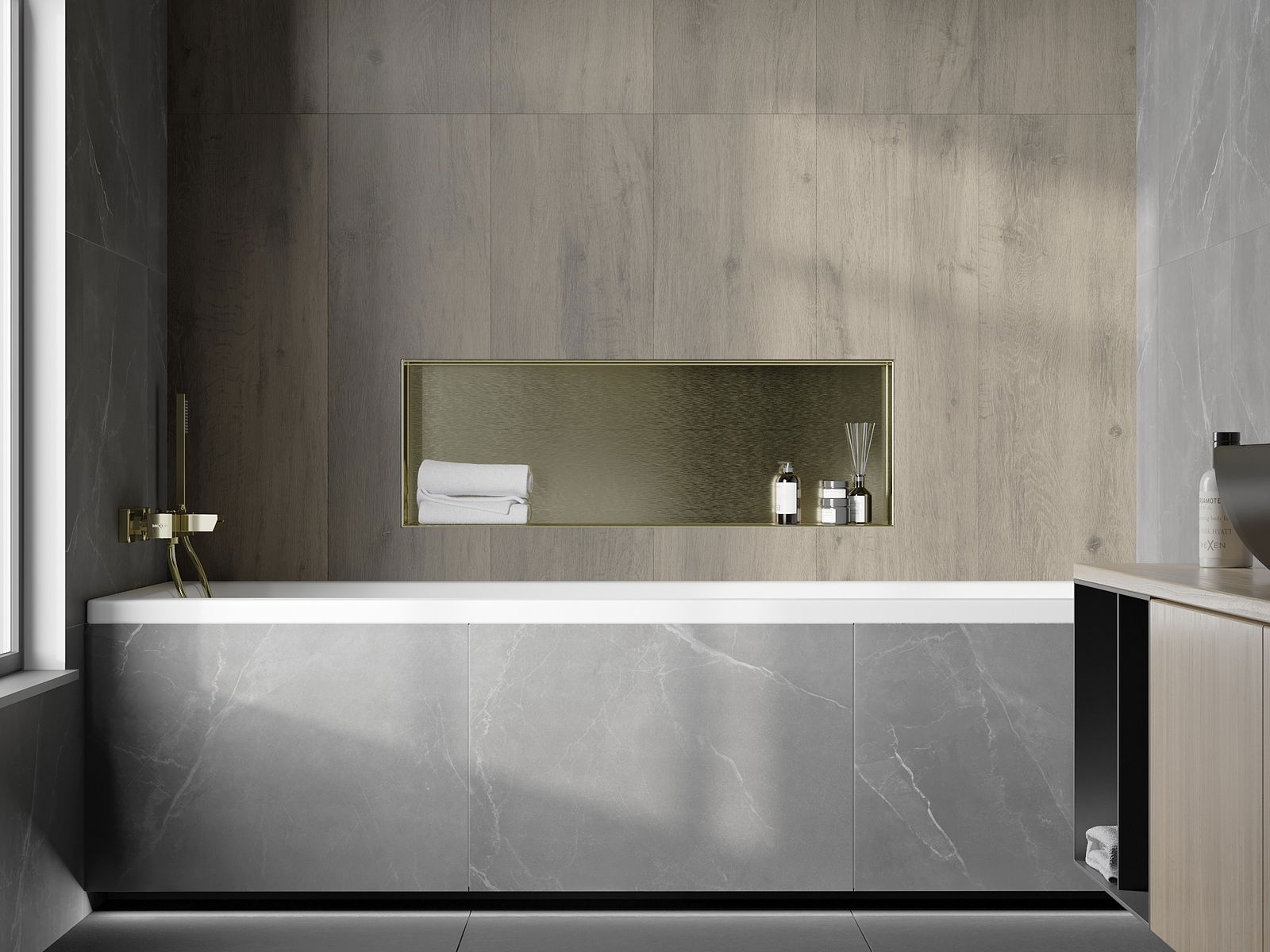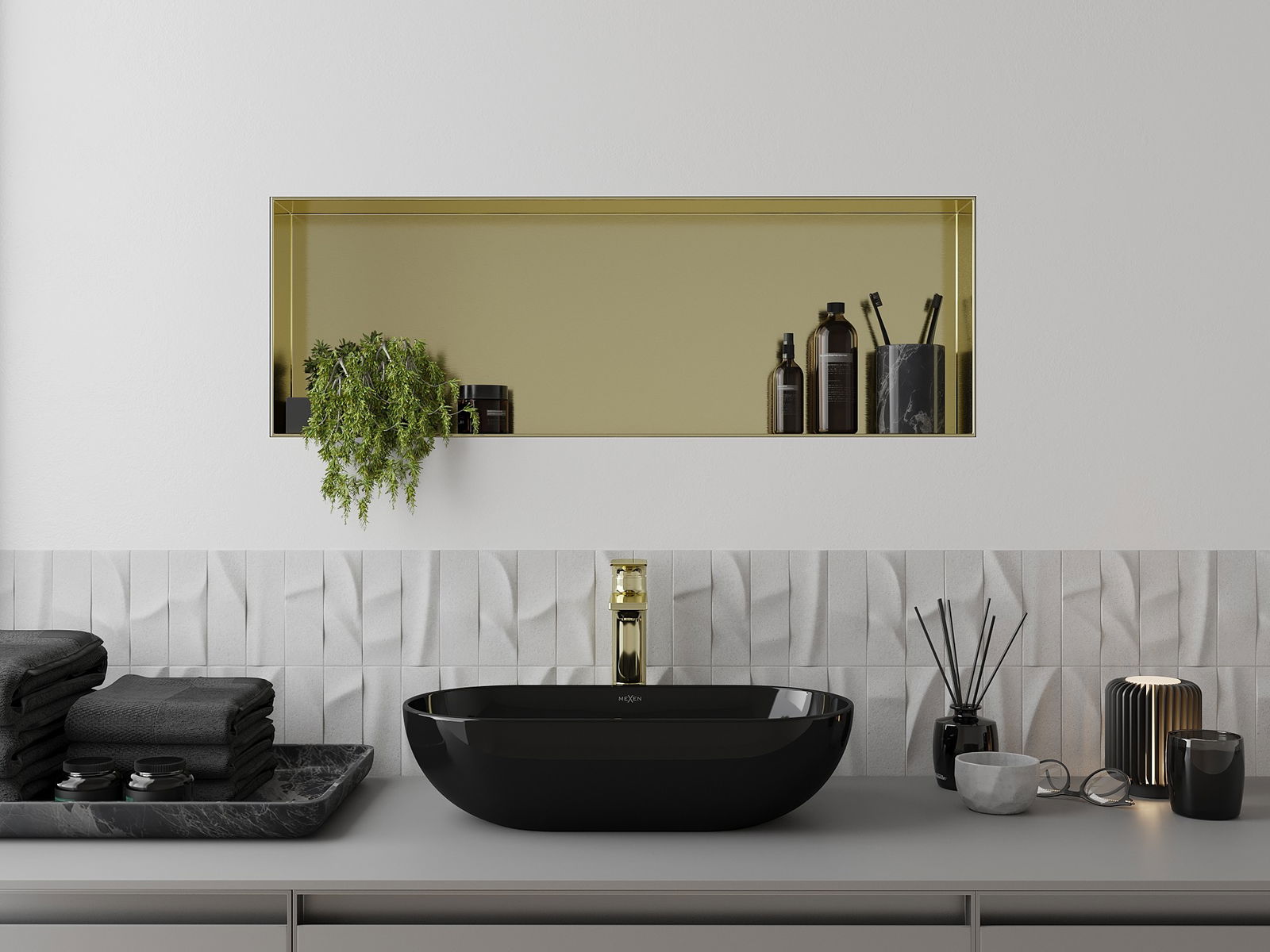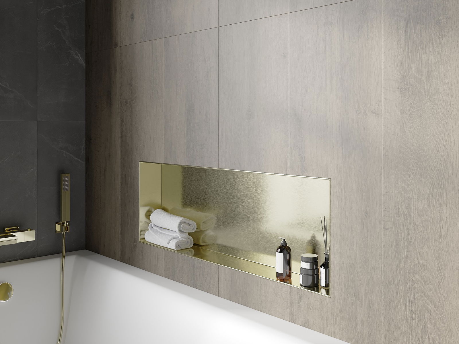 Mexen X-Wall-NR nisvak zonder flens 90 x 30 cm, geborsteld goud - 1951903010