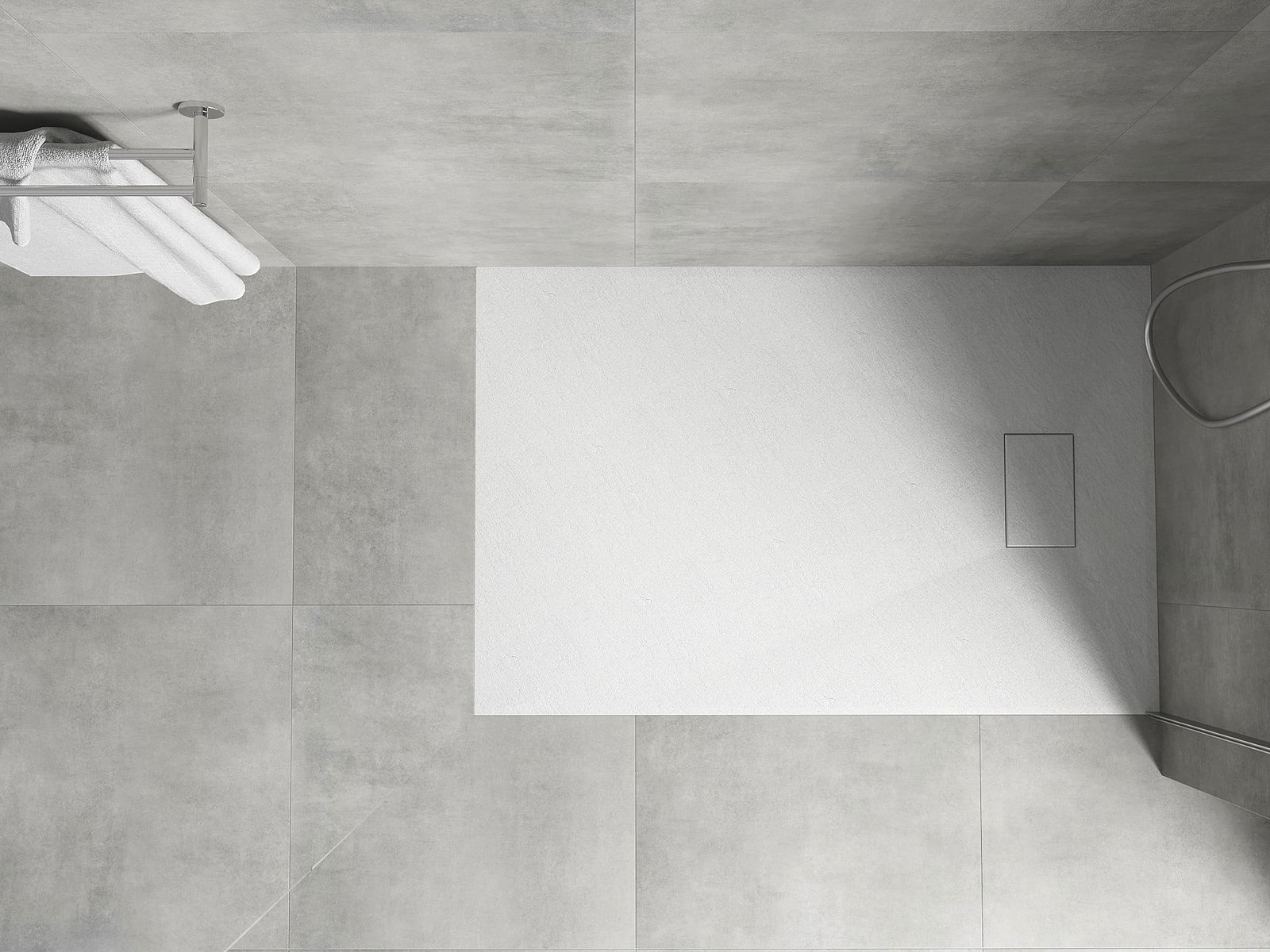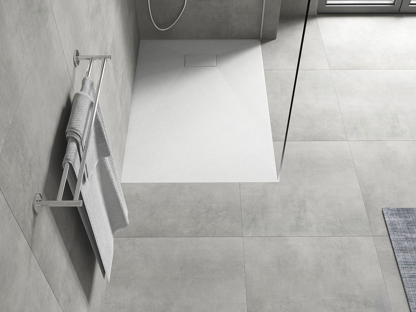 Het oppervlak van de douchebak doet met zijn structuur denken aan steen. Het vormt een uitzonderlijke combinatie van een natuurlijke uitstraling met een moderne interieurinrichting. Het voegt karakter toe, benadrukt de esthetiek en elegantie van de badkamerinrichting en verrast met zijn vorm.