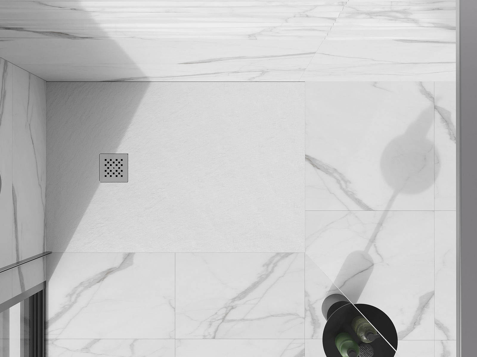 De douchebak is zo ontworpen dat het water vrij kan weglopen in de richting van de afvoer. Het zorgt voor een snelle en efficiënte afvoer van water van het oppervlak van de douchebak, waardoor het ontstaan van plassen en het overstromen van de badkamer wordt voorkomen.