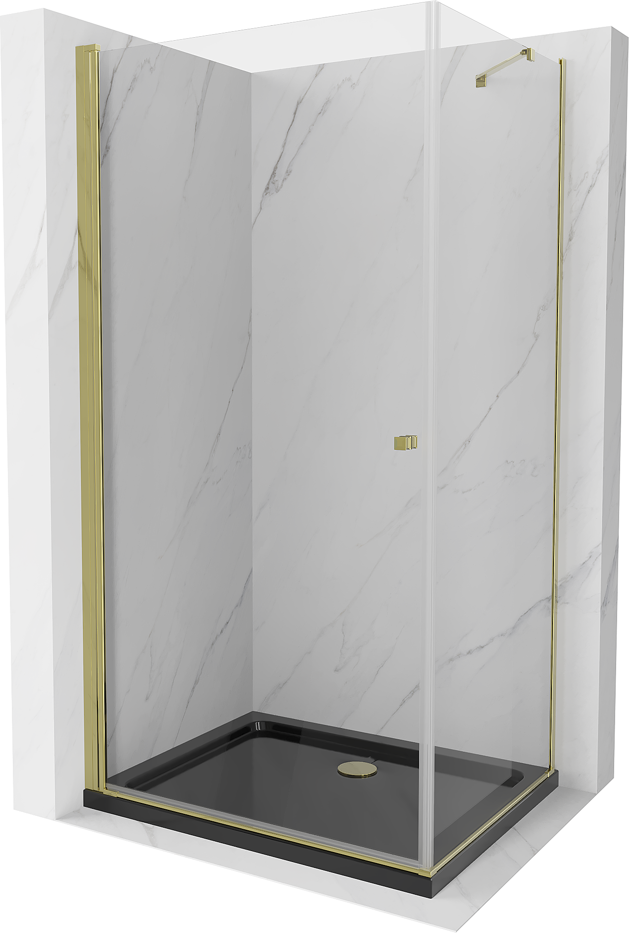 Mexen Pretoria draaideur douchecabine 80 x 100 cm, transparant, goud + Flat douchebak, zwart - 852-080-100-50-00-4070G