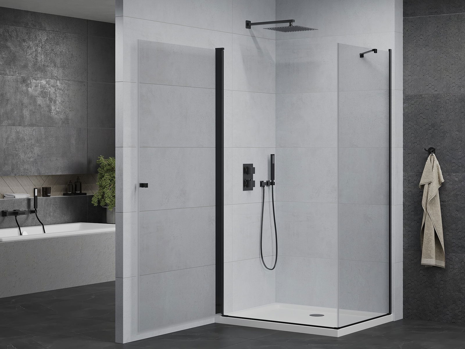 Mexen Pretoria douchecabine scharnierend 70 x 100 cm, transparant, zwart + douchebak Flat - 852-070-100-70-00-4010B