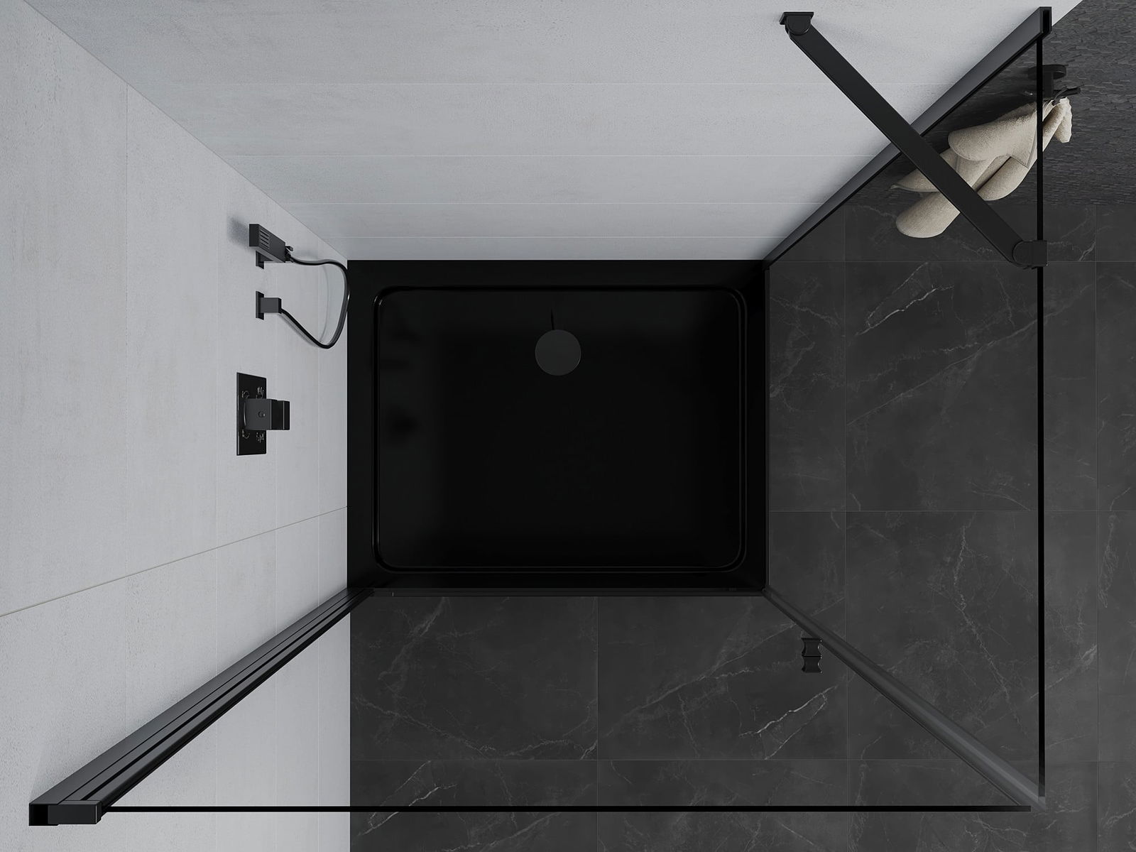 Handige en comfortabele greep is gemaakt van duurzaam en weerbestendig metaal. De modieuze vorm in combinatie met een afwerking die past bij de kleur van de profielen geeft het geheel een moderne en stijlvolle uitstraling, wat de esthetiek van elke badkamer benadrukt.