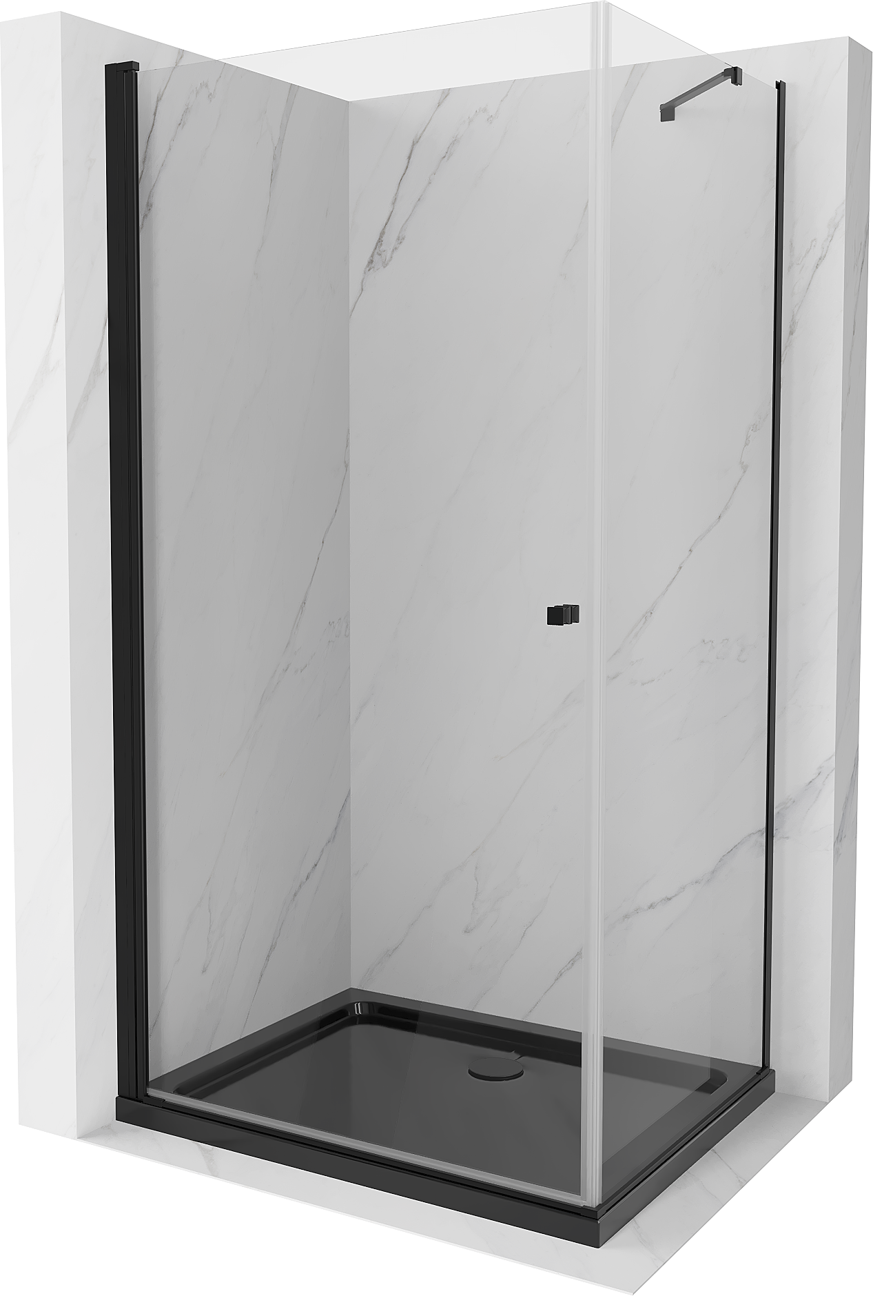 Mexen Pretoria douchecabine scharnierend 90 x 100 cm, transparant, zwart + Flat douchebak, zwart - 852-090-100-70-00-4070B