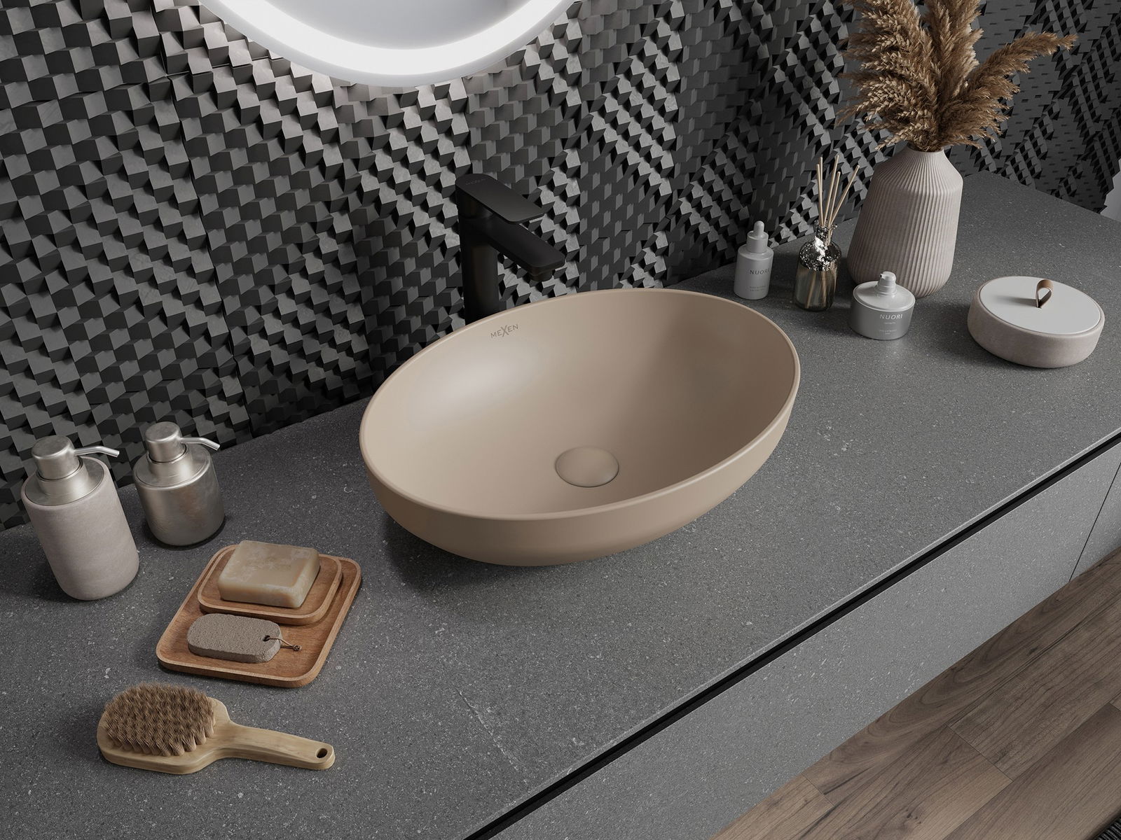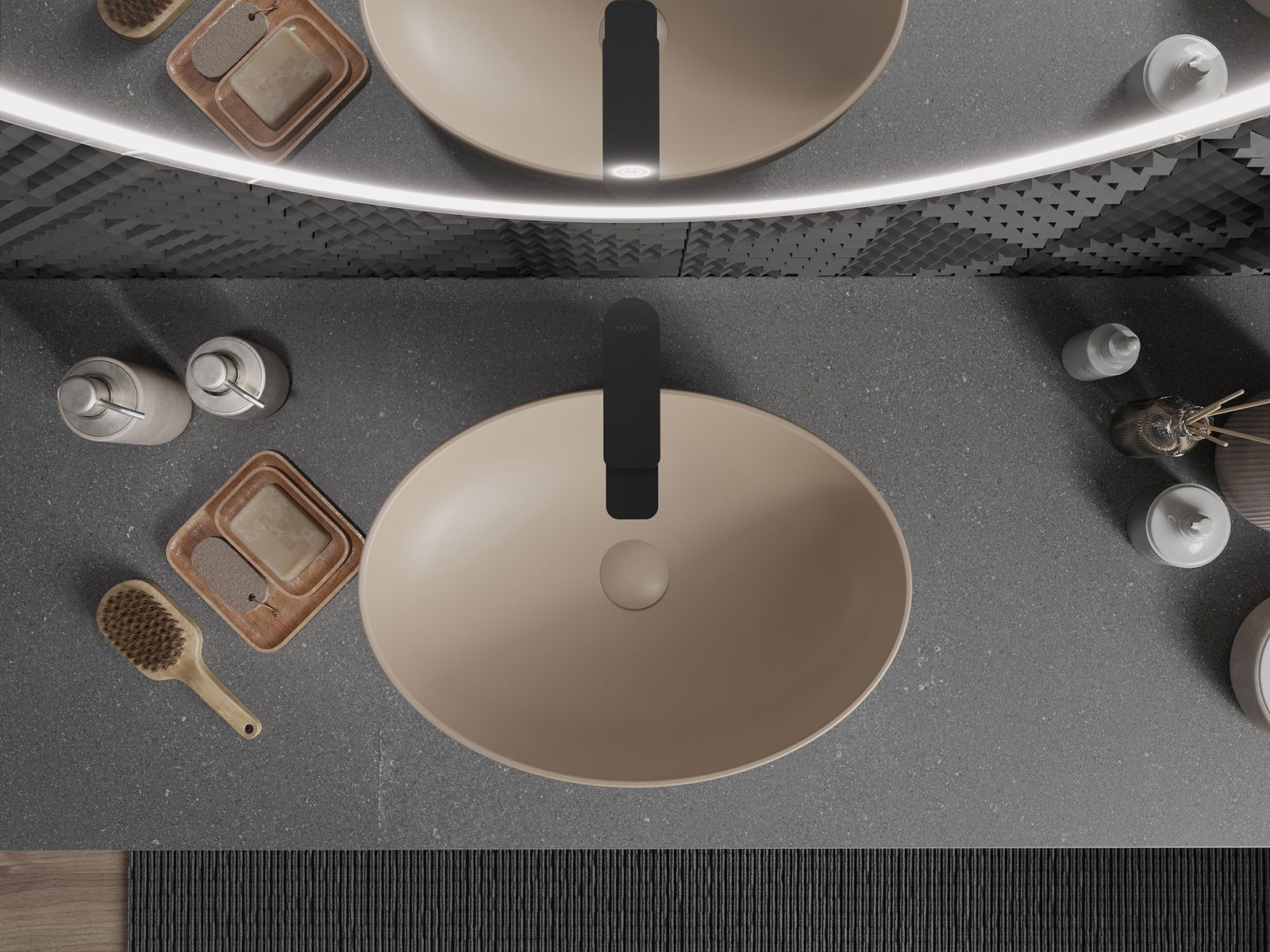 Het matte keramische oppervlak accentueert de kleur van het product perfect en geeft het een unieke en expressieve afwerking. De subtiele textuur van het matte keramiek voegt elegantie toe aan de badkamer en creëert een esthetisch aantrekkelijke ruimte.