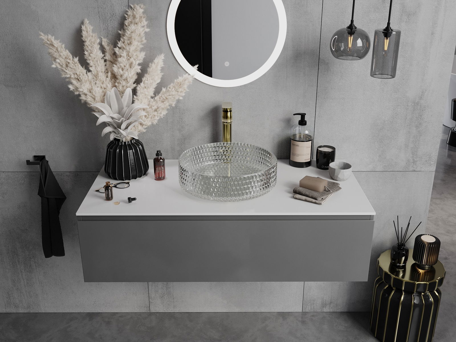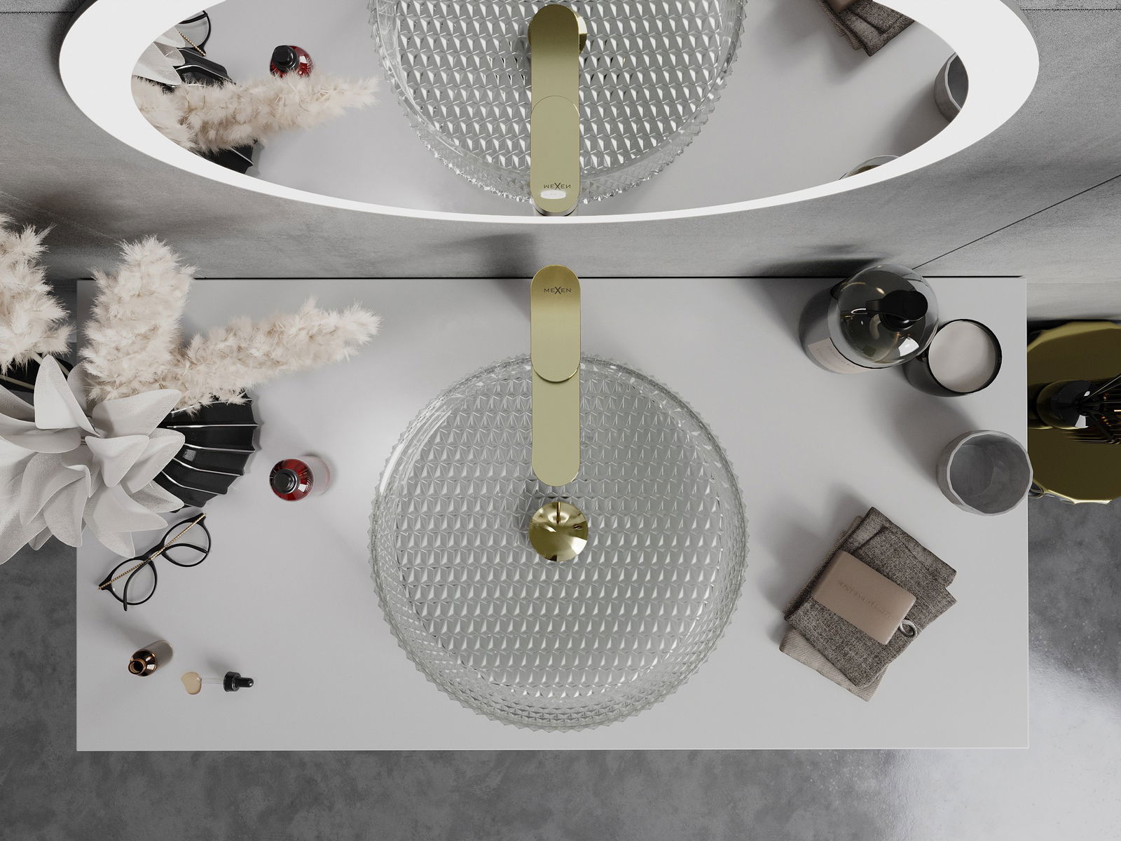 De wastafel onderscheidt zich door de unieke structuur van kristallen, die het een onmiskenbare en buitengewoon indrukwekkende uitstraling geven. De kristallen fonkelen in het licht, trekken de aandacht en voegen elegantie toe. Een praktische en stijlvolle oplossing voor elke badkamer.