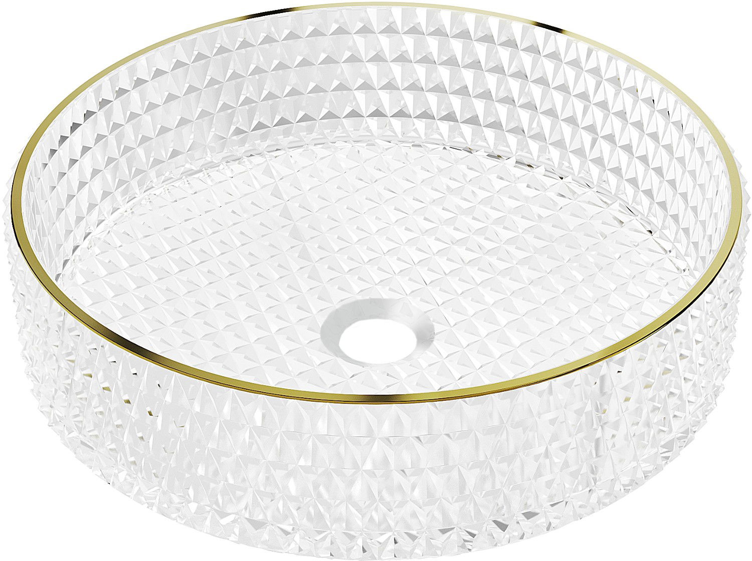 Mexen Aura glazen opbouw wastafel 39 x 39 cm, transparant/goud - 24013905