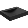 De wastafel heeft een gat waarin we een kraan kunnen installeren. Dit bespaart kostbare ruimte in de badkamer en benadrukt de esthetiek ervan. Deze oplossing maakt het ook gemakkelijker om de omgeving rond de wastafel schoon te houden.