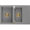 Mexen Gaspar granieten spoelbak 1,5-komorige met afdruiprek 737 x 475 mm, zwart gespikkeld, gouden sifon - 6507731505-76-G