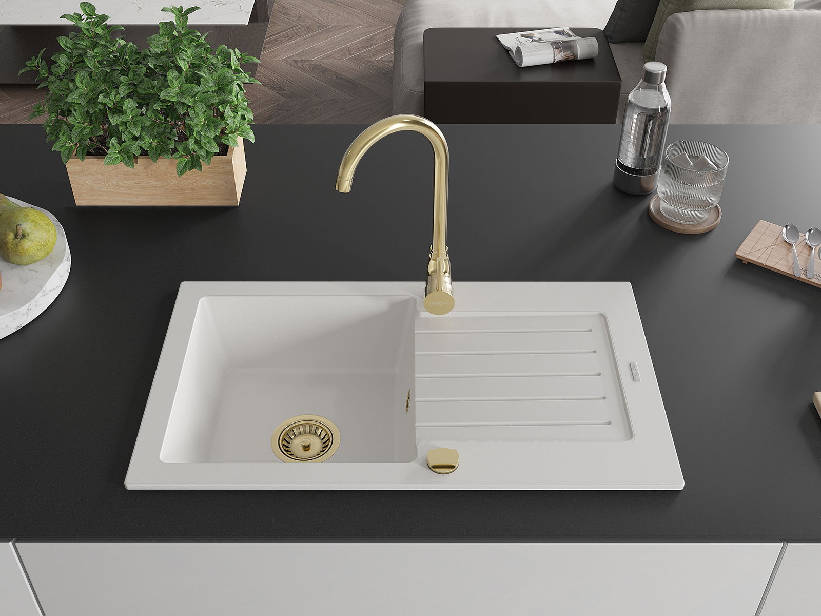 Het oppervlak van de gootsteen is zeer goed uitgehard en onderscheidt zich door uitzonderlijke weerstand tegen mechanische schade en krassen. Het duurzame materiaal zorgt ervoor dat de gootsteen er jarenlang goed uit blijft zien.