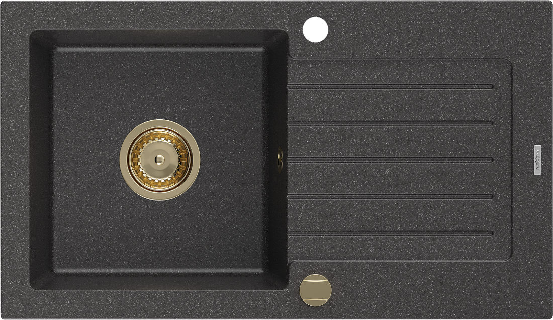 Mexen Pablo granieten gootsteen 1-komoer met afdruiprek 752 x 436 mm, zwart gespikkeld, gouden sifon - 6510751010-76-G