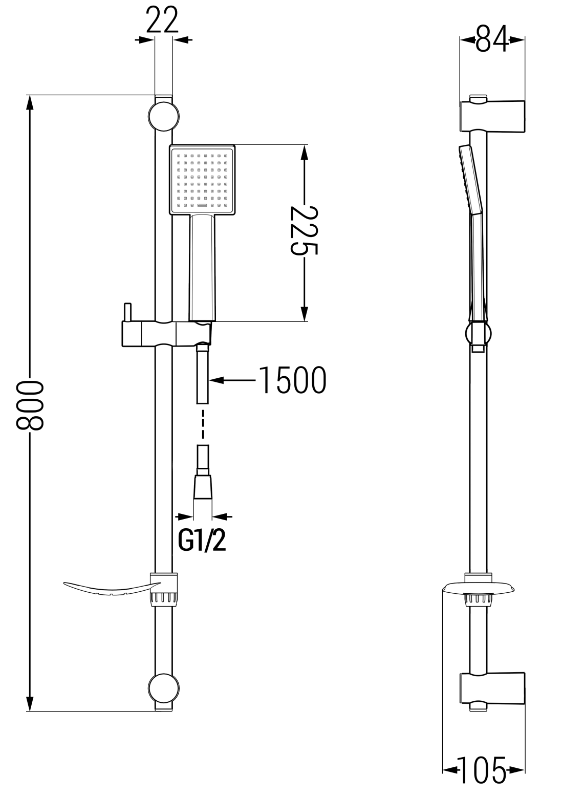 Afstand van de muur: 105 mm