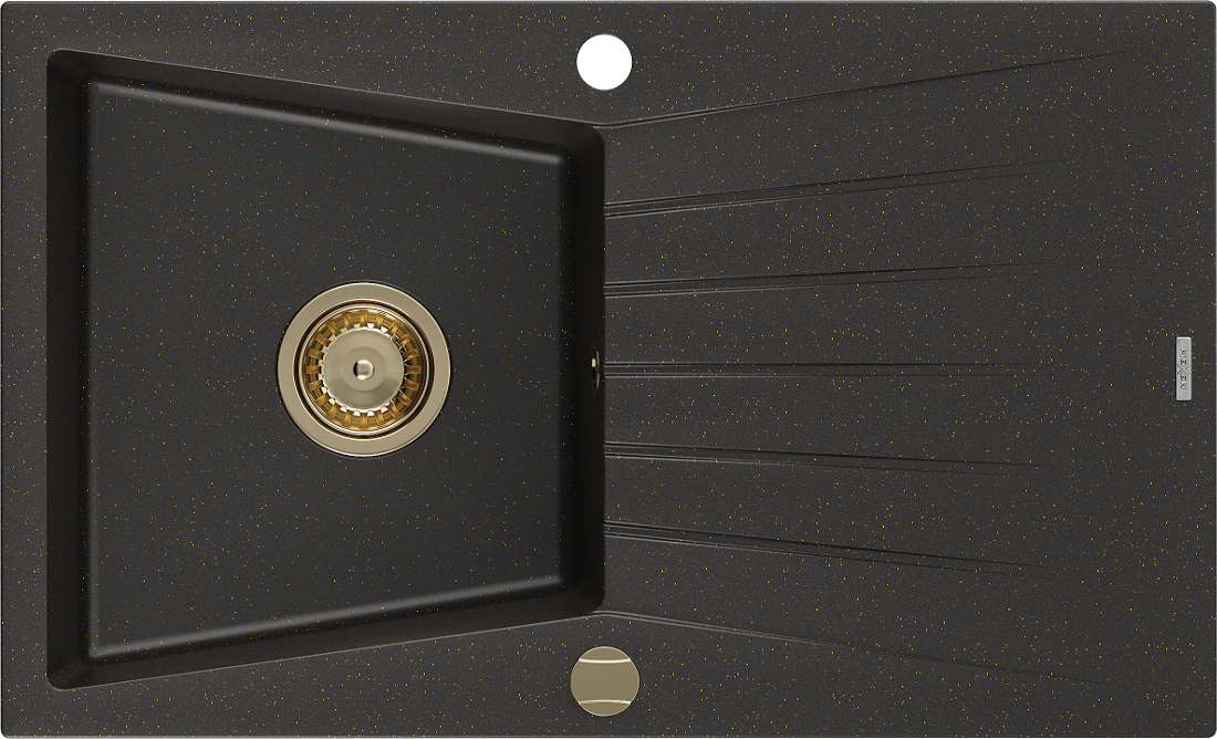 Mexen Cesar granieten spoelbak 1-komerig met afdruiprek 775 x 470 mm, zwart/gouden metallic, gouden sifon - 6514771010-75-G