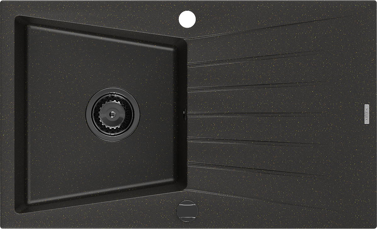 Mexen Cesar granieten spoelbak 1-komoors met afdruiprek 775 x 470 mm, zwart/goud metallic, zwarte sifon - 6514771010-75-B