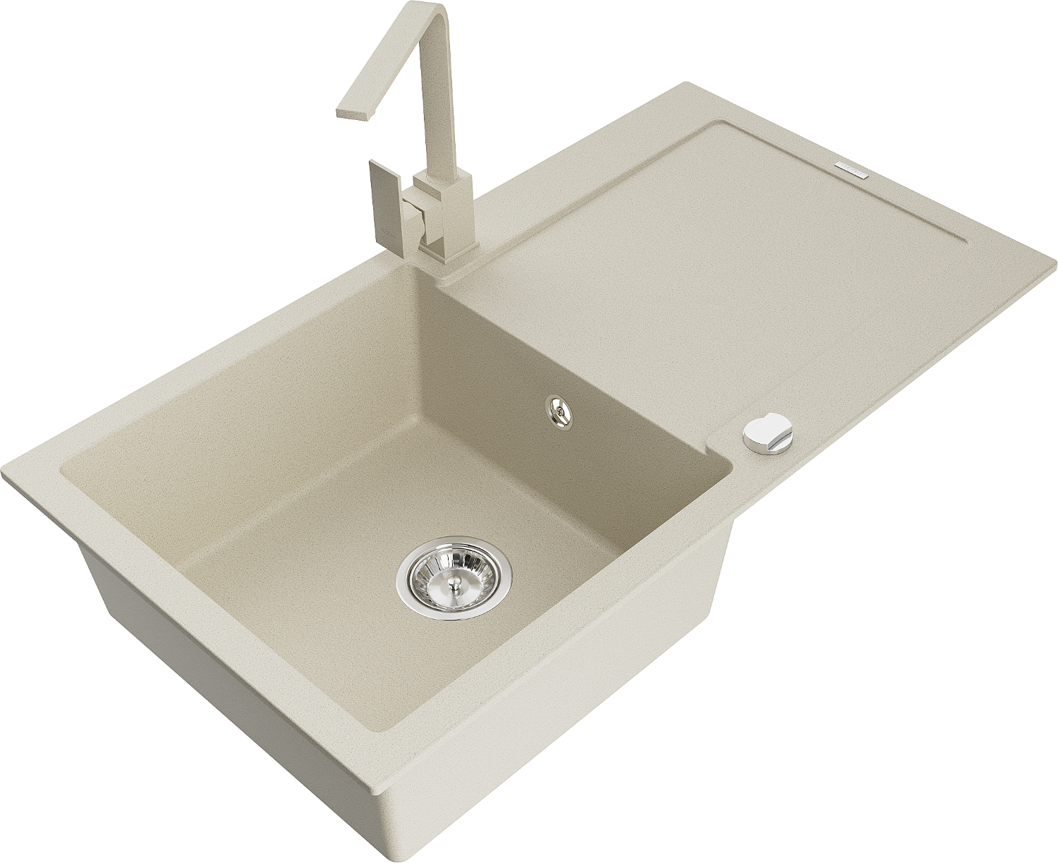 Mexen Leo granieten gootsteen 1-komor met afdruiprek en keukenmengkraan Rita, beige - 6501-69-670300-69