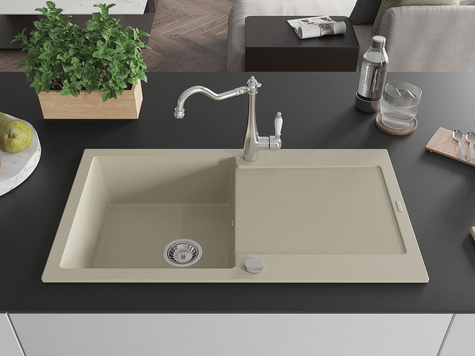 De gootsteen is gemaakt van hoogwaardig graniet. Het vormt een elegante en vooral praktische aanvulling op elke keuken, ongeacht de stijl. De hoge kwaliteit en duurzaamheid van graniet zorgen voor jarenlang gebruik.