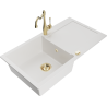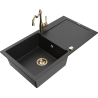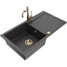 Mexen Leo granieten gootsteen 1-komorige met afdruiprek en keukenmengkraan Carla, grijs - 6501-71-670700-50