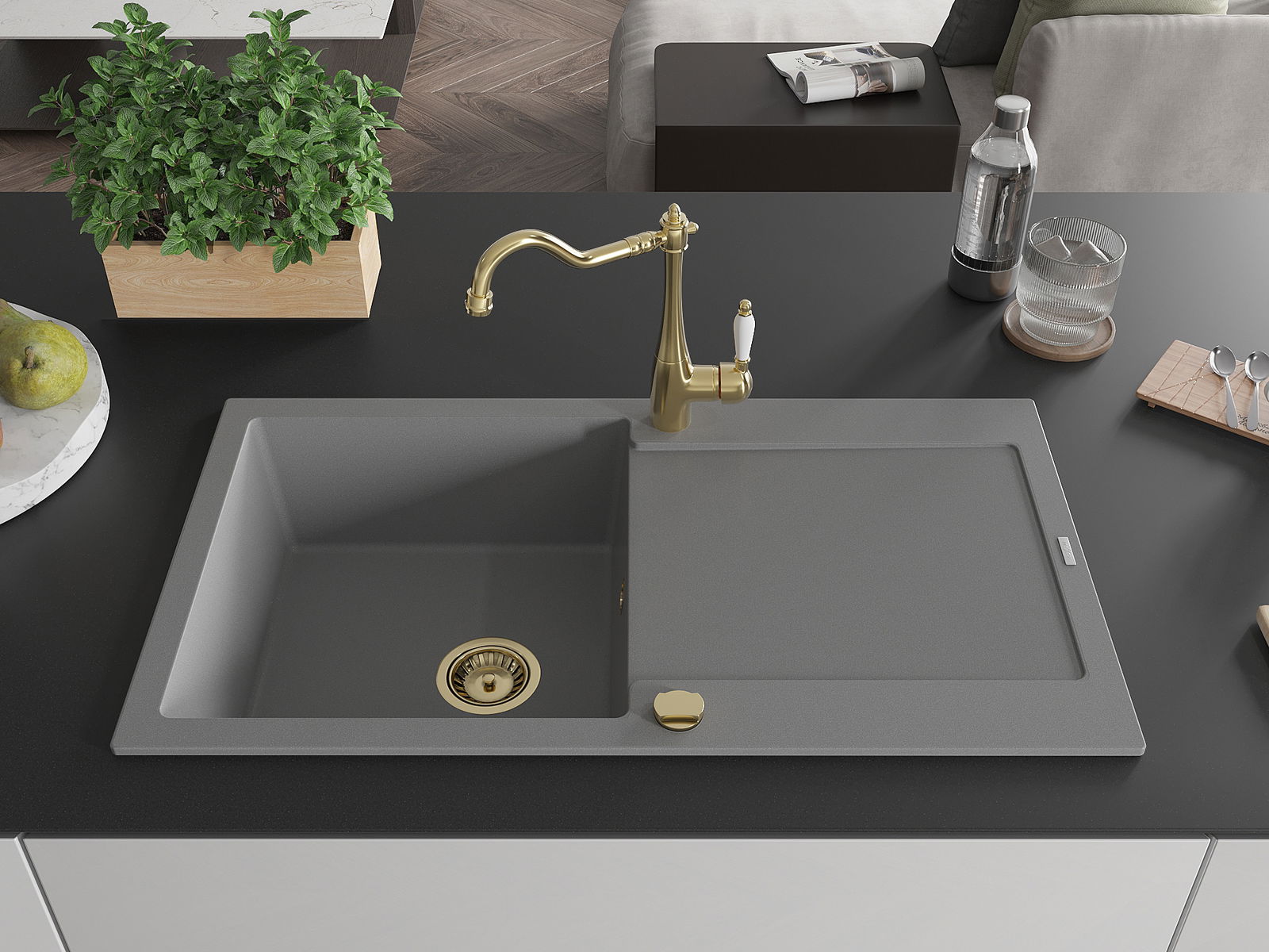De gootsteen is gemaakt van hoogwaardig graniet. Het vormt een elegante en vooral praktische aanvulling op elke keuken, ongeacht de stijl. De hoge kwaliteit en duurzaamheid van graniet zorgen voor jarenlang gebruik.