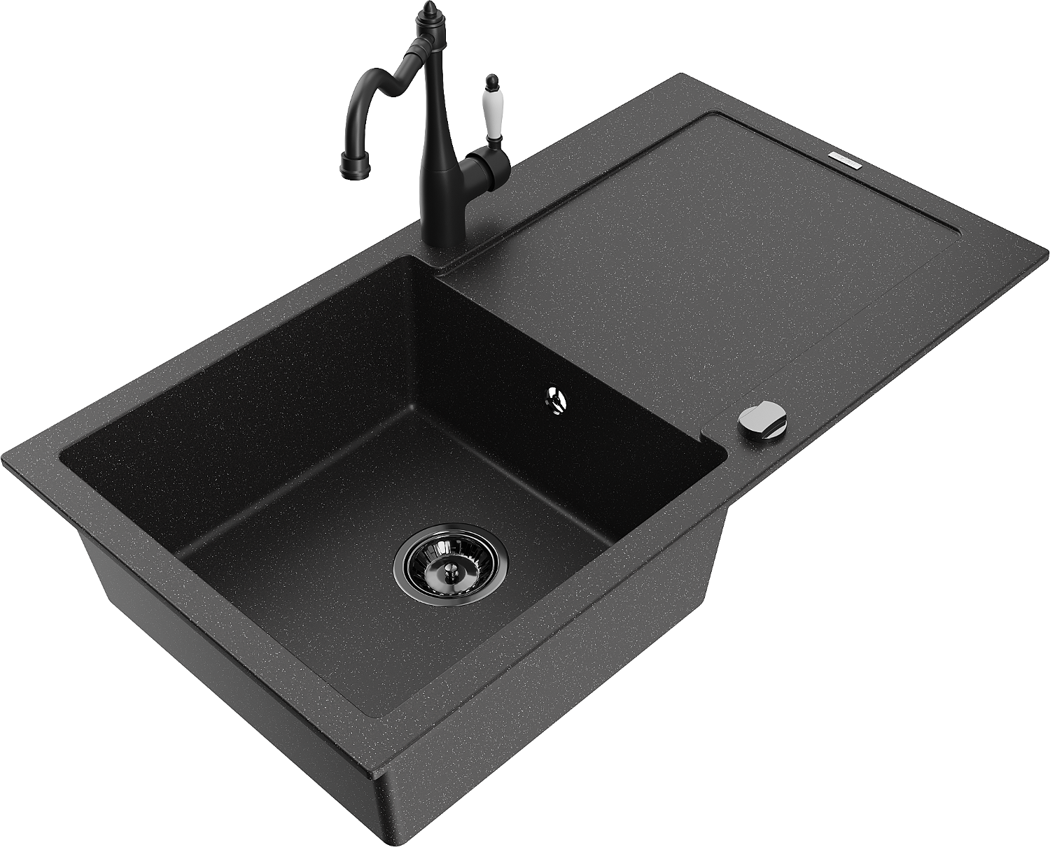 Mexen Leo granieten spoelbak 1-bak met afdruiprek en keukenmengkraan Carla, zwart/zilver metallic - 6501-73-670700-70-B
