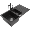 Mexen Matias granieten gootsteen 1,5-komorige met afdruiprek en keukenmengkraan Carla, wit - 6502-20-670700-20