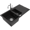 Mexen Matias granieten gootsteen 1,5-komers met afdruiprek en keukenmengkraan Carla, beige - 6502-69-670700-00