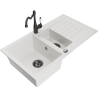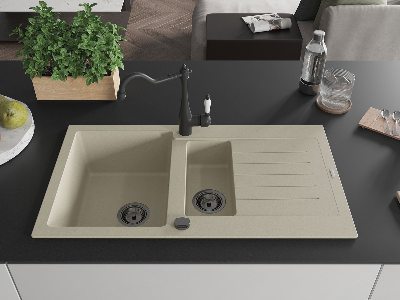 Mexen Matias granieten spoelbak 1,5-kommerig met afdruiprek en keukenmengkraan Carla, beige - 6502-69-670700-70