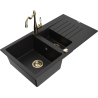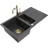 Mexen Matias granieten spoelbak 1,5-komorige met afdruiprek en keukenkraan Carla, grijs - 6502-71-670700-50