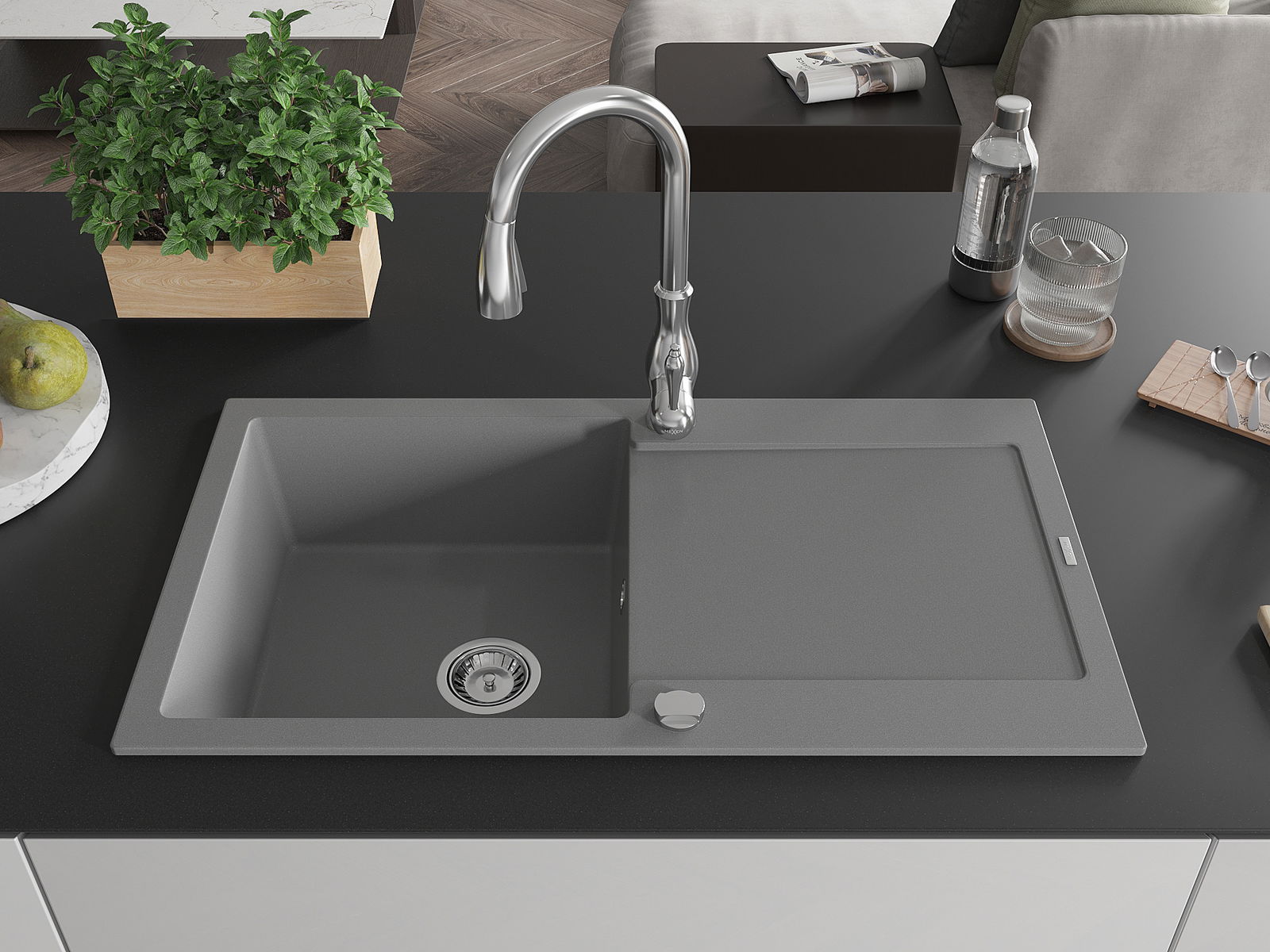 De gootsteen is gemaakt van hoogwaardig graniet. Het vormt een elegante en vooral praktische aanvulling op elke keuken, ongeacht de stijl. De hoge kwaliteit en duurzaamheid van graniet zorgen voor jarenlang gebruik.