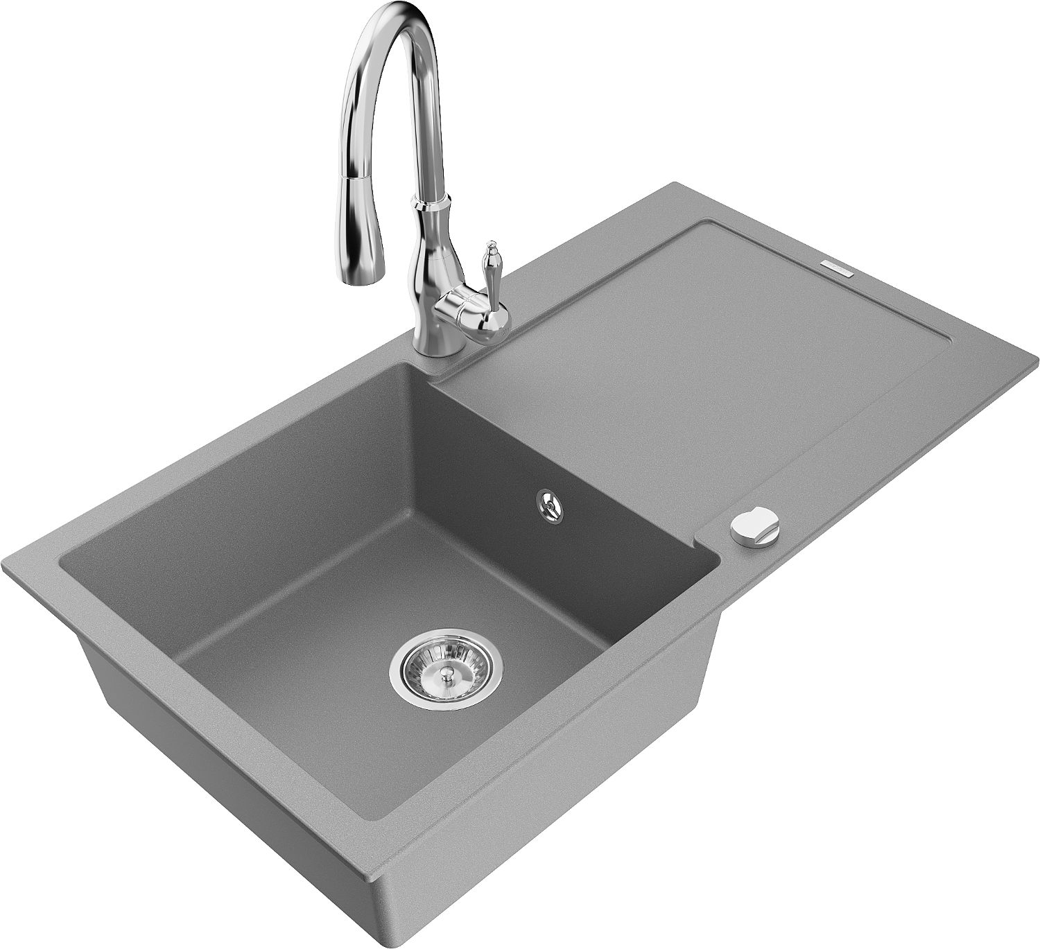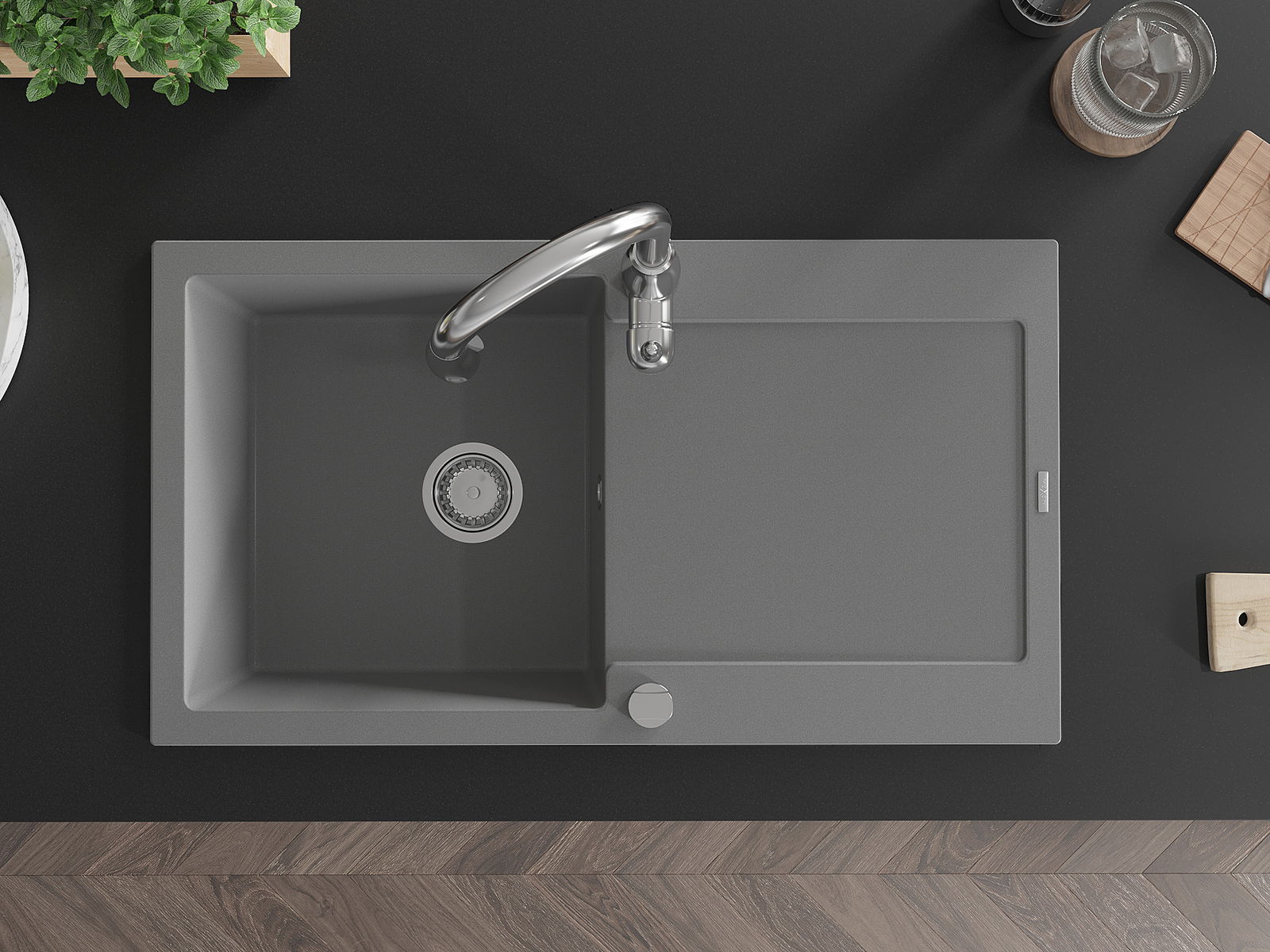 Mexen Leo granieten spoelbak 1-komers met afdruipplaat en keukenmengkraan Savita, grijs - 6501-71-672601-00
