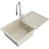 Het oppervlak van de gootsteen is bestand tegen vlekken en verkleuringen, waardoor het gemakkelijk schoon te houden is en zijn kleur behoudt gedurende een lange gebruiksperiode. Een esthetische en praktische aanvulling op elke keuken.