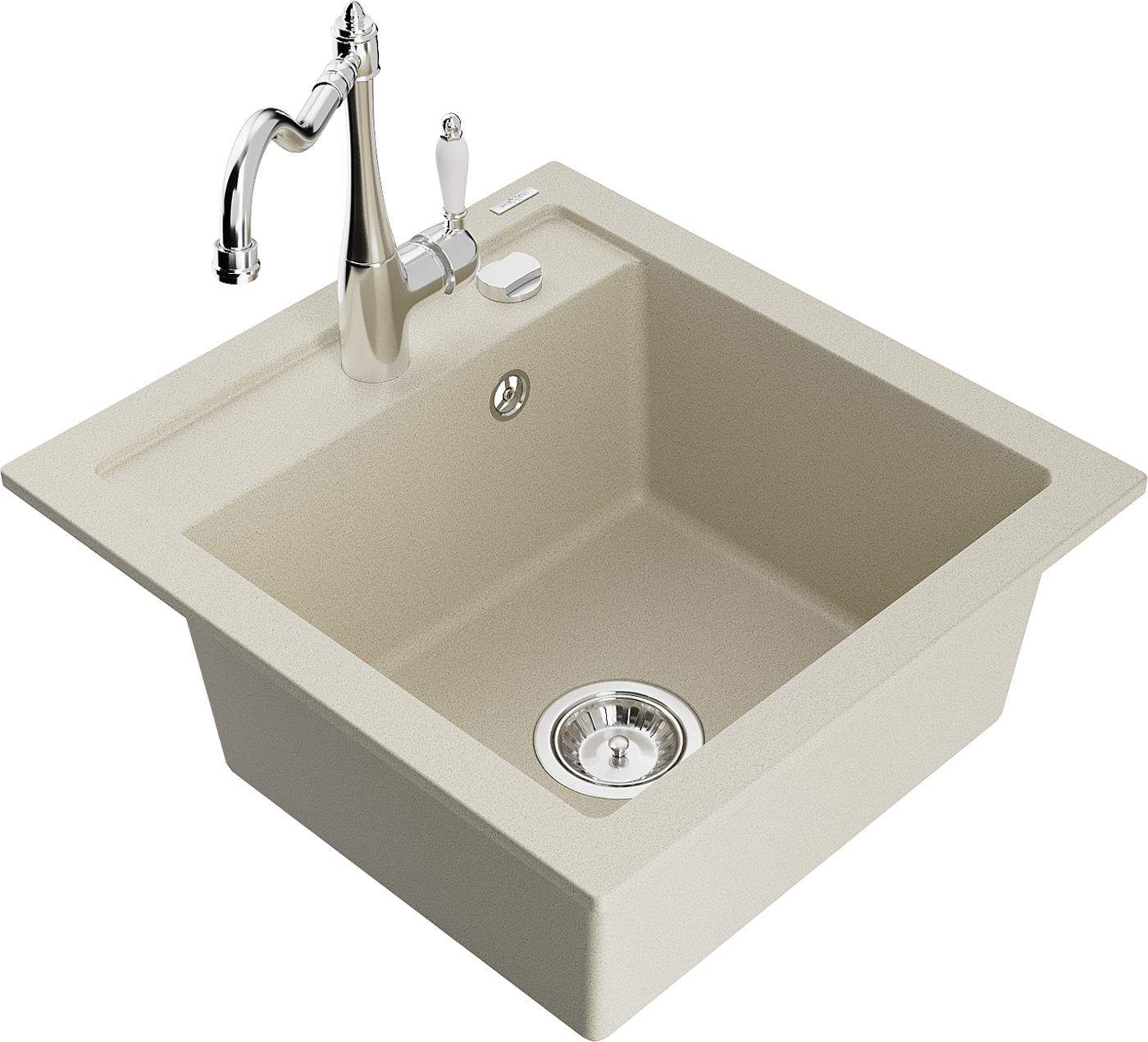 Het oppervlak van de gootsteen is bestand tegen vlekken en verkleuringen, waardoor het gemakkelijk schoon te houden is en zijn kleur behoudt gedurende een lange gebruiksperiode. Een esthetische en praktische aanvulling op elke keuken.