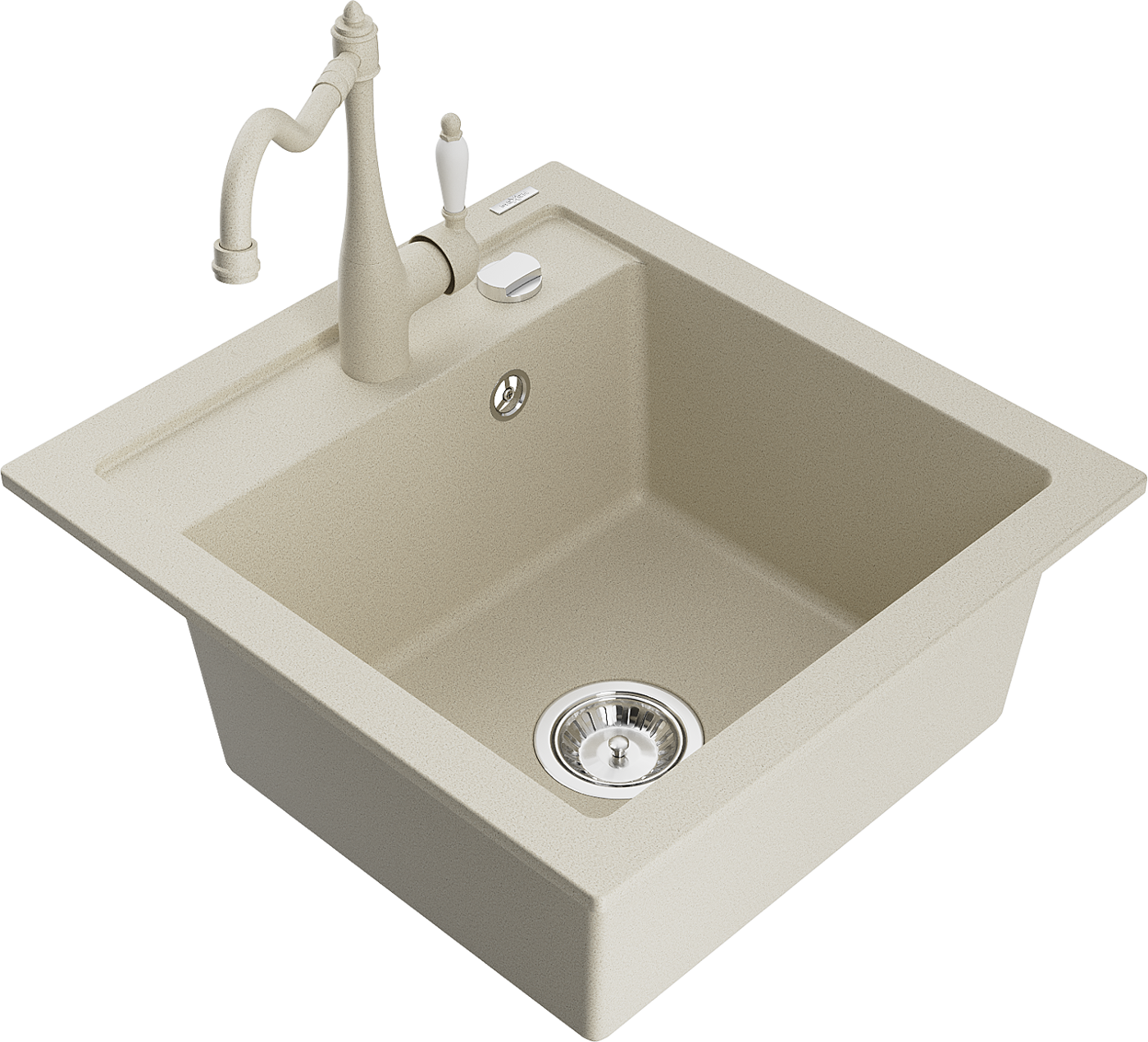 Mexen Vito granieten spoelbak met 1 bak en keukenkraan Carla, beige - 6503-69-670700-69