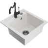 Het oppervlak van de gootsteen is bestand tegen vlekken en verkleuringen, waardoor het gemakkelijk schoon te houden is en zijn kleur behoudt gedurende een lange gebruiksperiode. Een esthetische en praktische aanvulling op elke keuken.