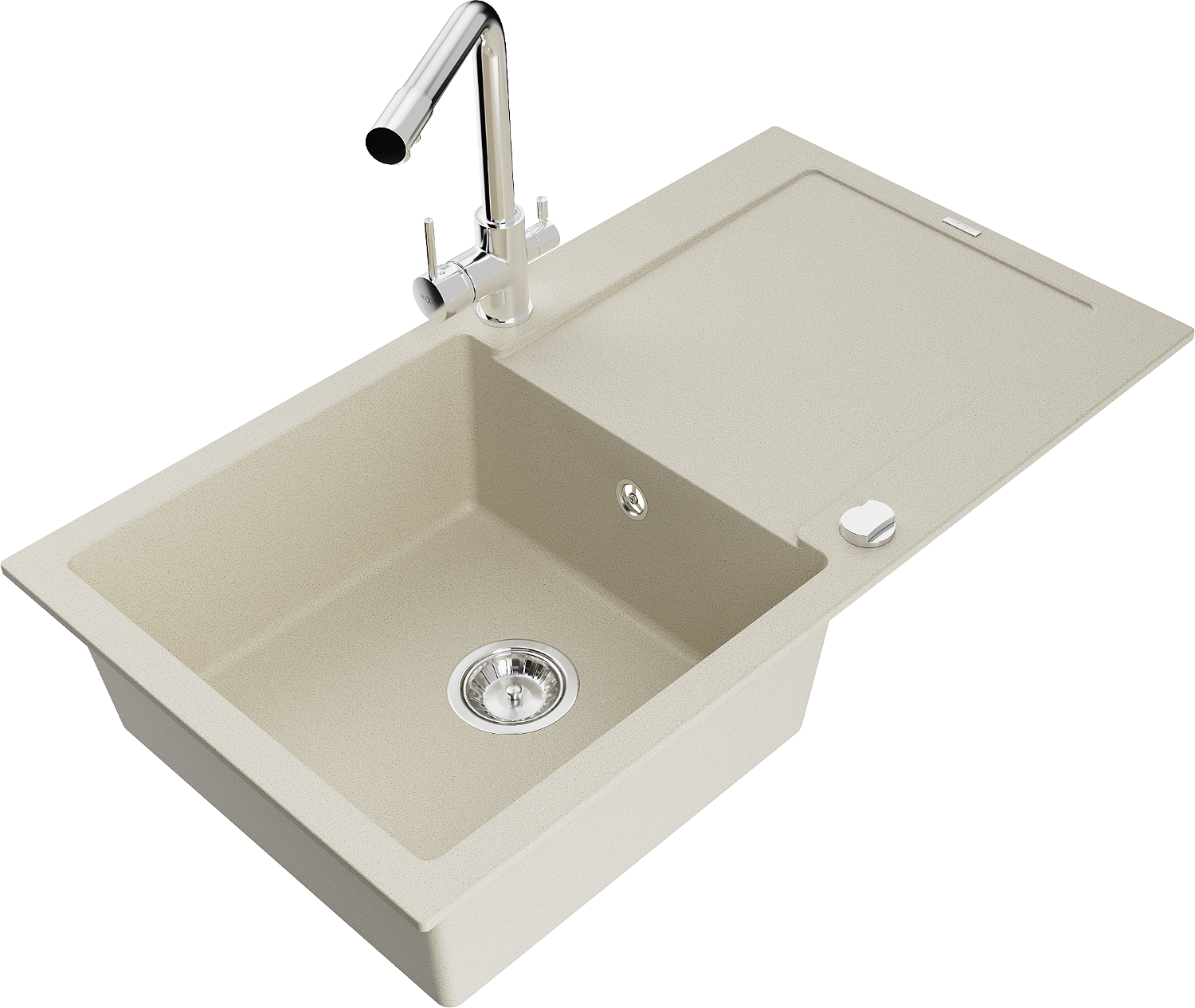 Mexen Leo granieten gootsteen 1-komers met afdruiprek en keukenkraan Duero, beige- 6501-69-671600-00